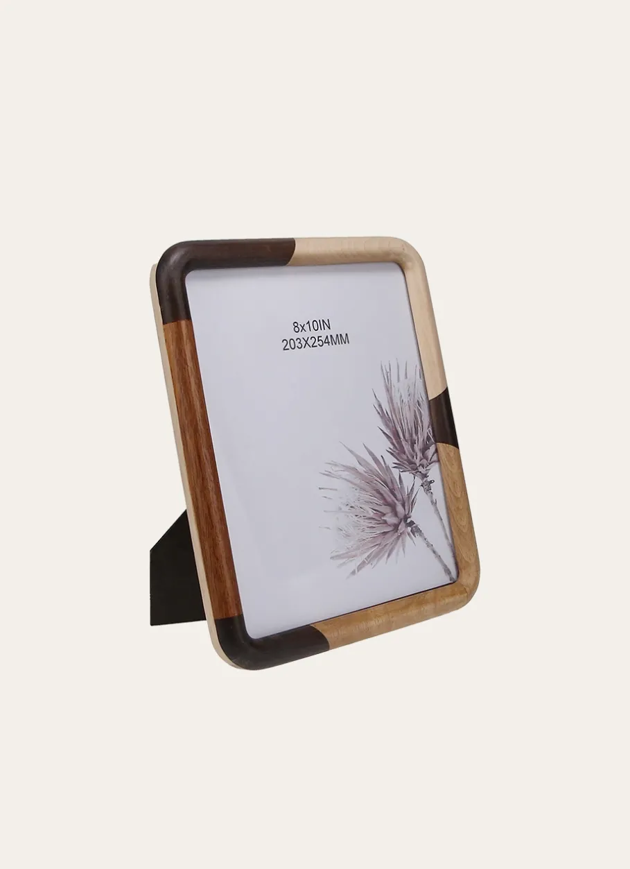 Cadre photo patchwork avec contours composé de différentes couleurs de bois. Existe dans un format plus petit. Dimensions (cm) : 20.32 x 25.40.