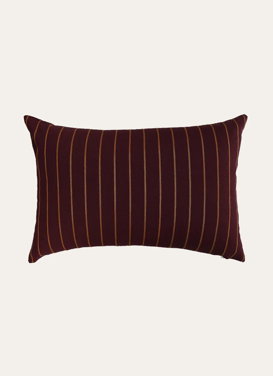 Coussin à rayures tissées. Déhoussable à l’aide d’une fermeture à glissière. Vendu avec son intérieur. Produit certifié Oeko-Tex®. Dimensions (cm) : 40 x 60.
