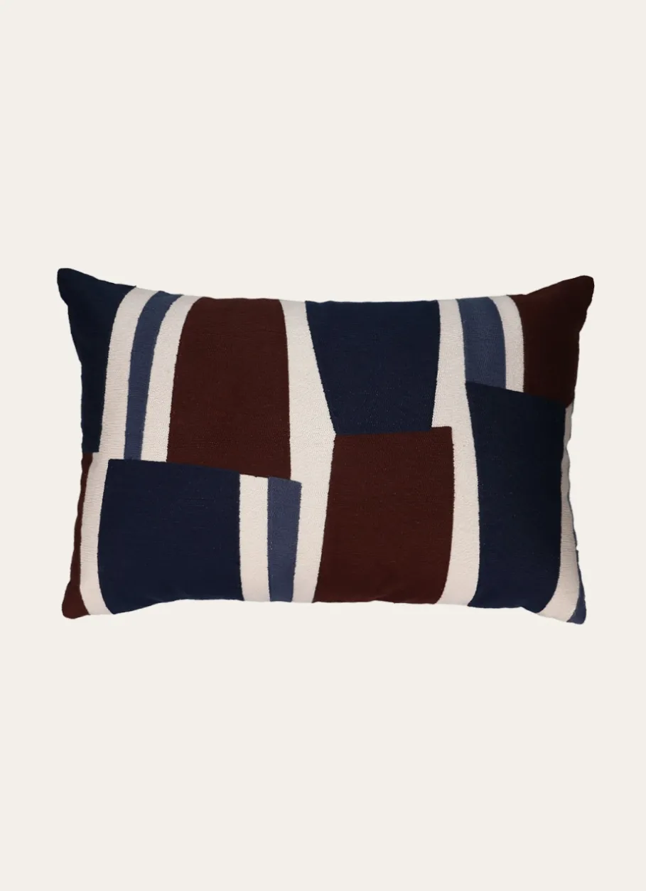 Le motif géométrique de ce coussin est réalisé en broderie point de chainette. Le dos est en canevas de coton. Il est déhoussable à l’aide d’une fermeture à glissière invisible et vendu avec son intérieur. Produit certifié Oeko-Tex®. Dimensions (cm) : 40 x 60.