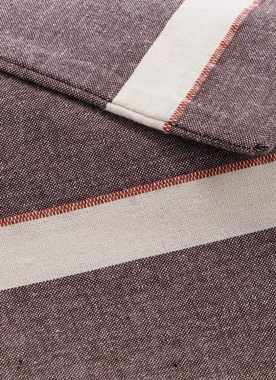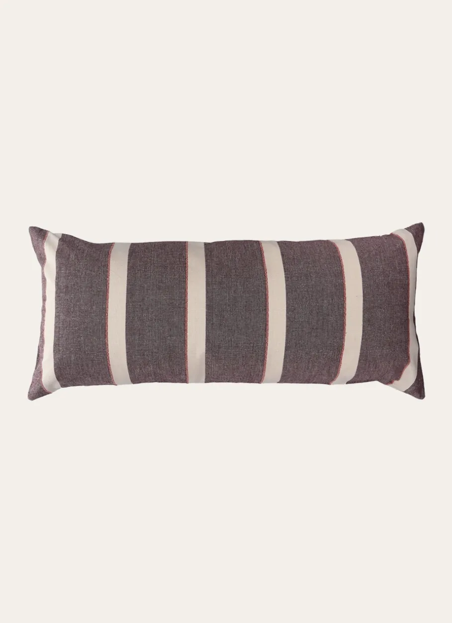 Coussin doux et moelleux à rayures tissées. Déhoussable à l’aide d’une fermeture à glissière. Vendu avec son intérieur. Dimensions (cm) : 30 x 70. Produit certifié Oeko-Tex®.