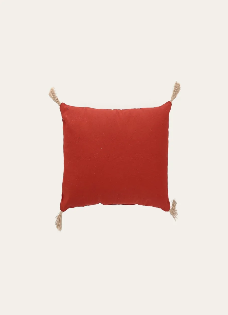 Coussin carré en coton uni avec petits pompons aux extrémités. Délicat et raffiné, ce coussin trouvera sa place sur un fauteuil ou votre canapé. Non déhoussable. Produit certifié OEKO-TEX®. Existe en plusieurs coloris. Dimensions (cm) : H40 x L40
