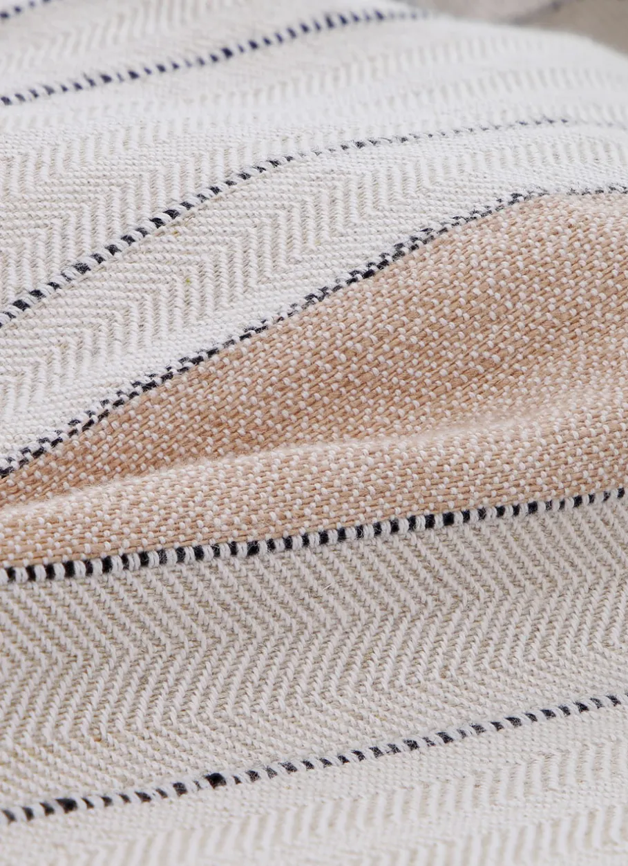 Apportez une note de charme naturel à votre intérieur avec notre housse de coussin Ruben, tissée dans un subtil mélange de coton et de lin. Ses rayures centrées lui confèrent une élégance discrète, idéale pour les ambiances épurées ou bohèmes. Sa texture authentique et son tombé souple en font un accessoire déco aussi agréable au toucher qu’à l’œil. Dotée d’une fermeture à glissière invisible, elle allie praticité et finition soignée.Compatible avec le coussin à recouvrir P0360TORE030, elle s’intègre parfaitement dans un salon ou une chambre pour une touche textile raffinée.Dimensions (cm) : 30 × 50.
