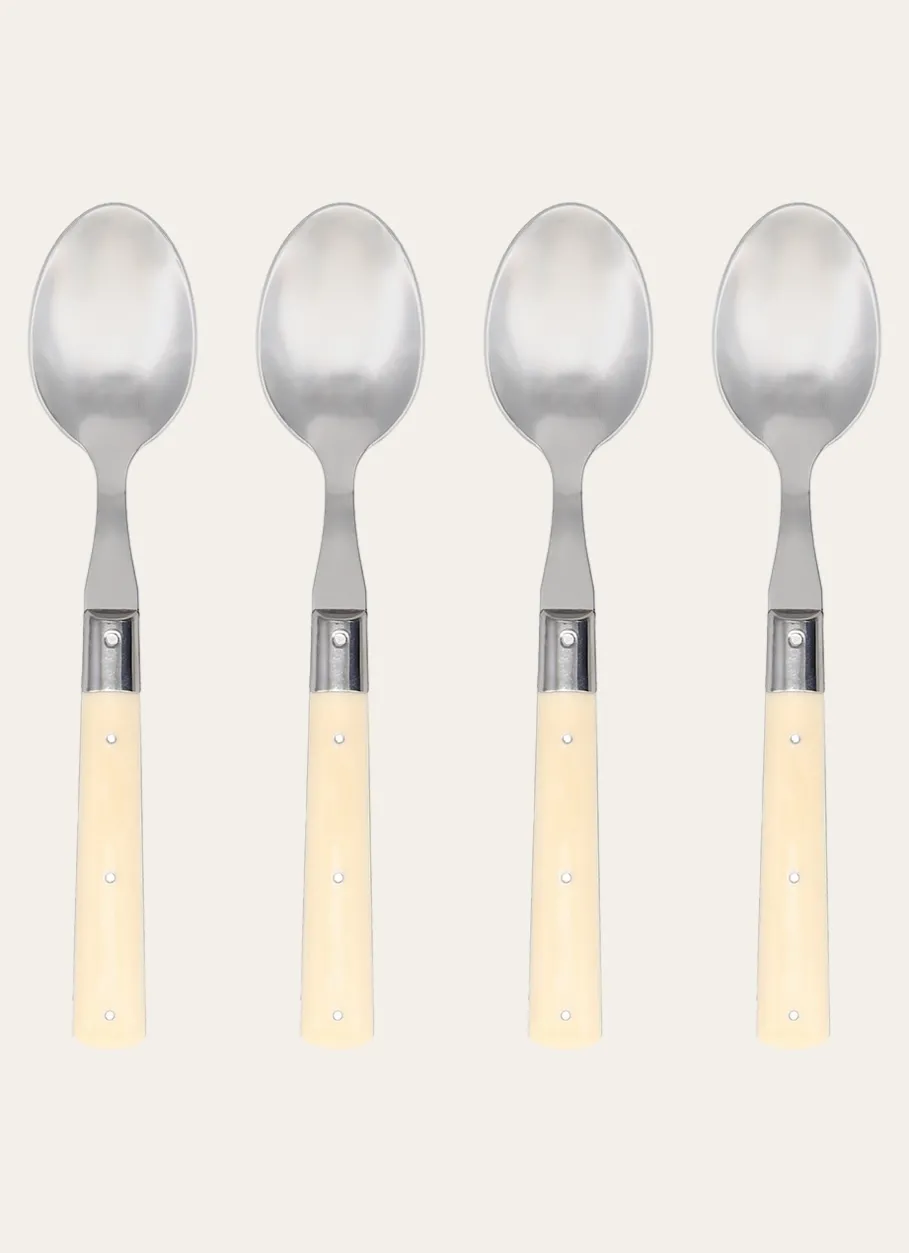 Apportez du raffinement à votre table avec ce coffret de 4 cuillères à soupe en inox pleine soie. Leur manche en ABS ivoire offre une prise en main confortable et une touche d’élégance intemporelle. Avec une épaisseur de 1,5 mm, elles allient robustesse et qualité pour un usage quotidien. Fabriquées en France et compatibles avec le lave-vaisselle, elles sont à la fois pratiques et durables.