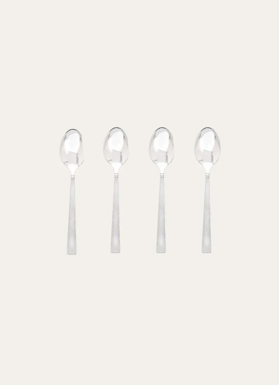 Coffret de 4 cuillères à soupe. Un modèle élégant avec son manche délicatement ciselé finition miroir, idéal pour vos tables de fin d’année comme pour une utilisation quotidienne. Passe au lave-vaisselle. . Dimensions (cm) : H20.4