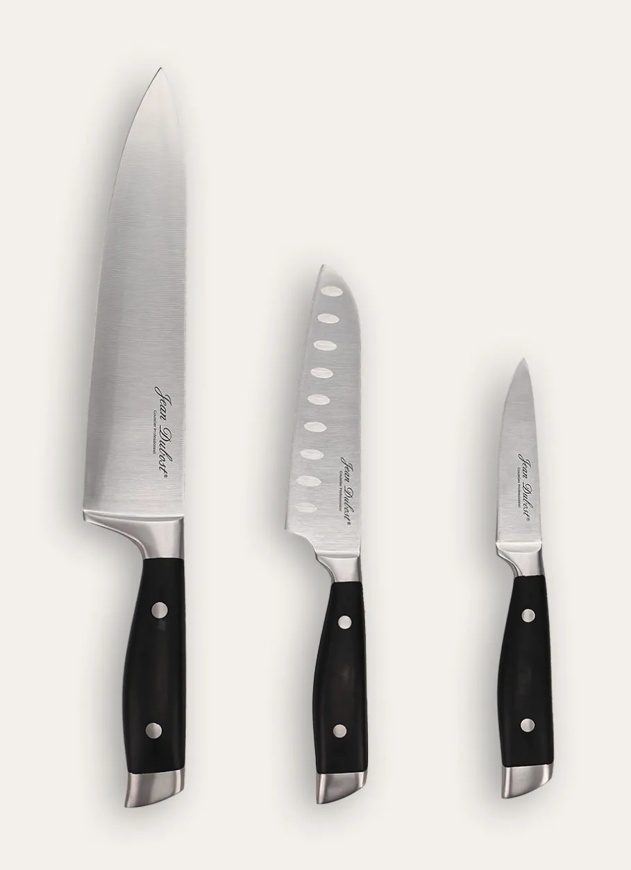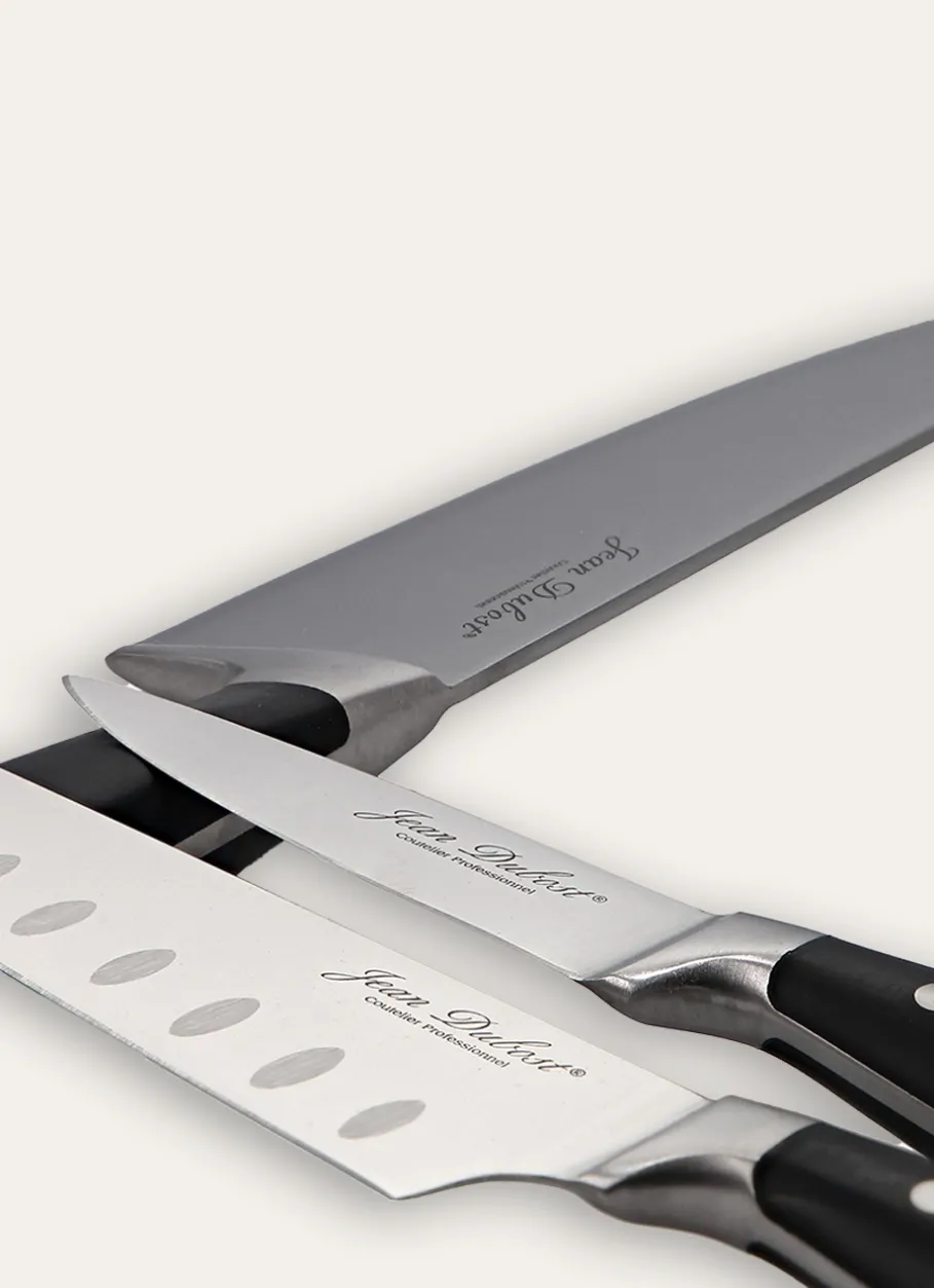 Offrez ou adoptez ce magnifique coffret cadeau avec couvercle aimanté, comprenant trois couteaux essentiels : un couteau d’office, un couteau Santoku et un couteau Chef. Confectionnés en acier inox forgé, ces couteaux allient robustesse et élégance, avec un manche en POM noir pour une prise en main confortable et durable. Conçus pour une utilisation pratique, ils passent au lave-vaisselle, garantissant un entretien facile après chaque usage. Dimensions (cm) : Office : 9. Santoku : 13. Chef : 20.