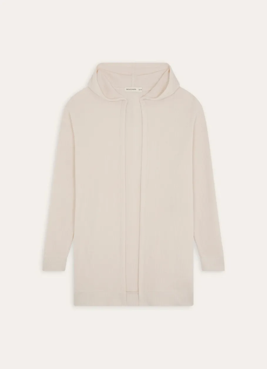Bouchara Homewear, Accessoire^GILET LONG À CAPUCHE EN MAILLE NID D’ABEILLE