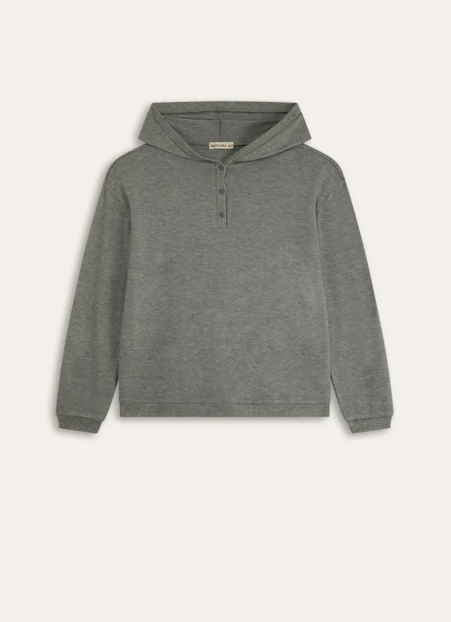 Découvrez notre pull à capuche en maille douce côtelée, parfait pour un confort ultime à la maison. Existe de la taille 34/36 à la taille 50/52.