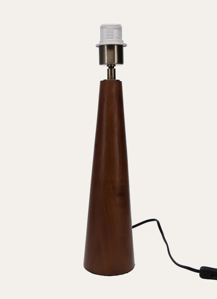 Pied de lampe en bois de forme conique dôté d’un cable en PVC noir avec interrupteur on/off. Une pièce durable et résistante qui ajoutera une touche de personnalité dans votre intérieur. Fonctionne avec une ampoule avec culot E27 d’une puissance maximale de 40 watts 220-240V (non fournie). Dimensions (cm) : H44,5 x D10 (H35 sans le culot). Longueur du câble (cm) : L180. Existe en 2 coloris.