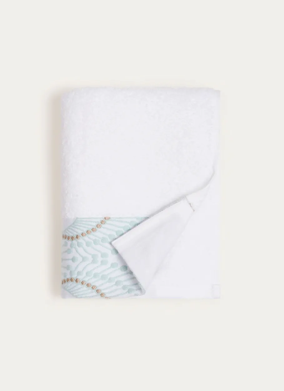 Produit fabriqué au Portugal. Conseils d’entretien :Lavez votre serviette en machine à 40 °C pour conserver ses couleurs et sa douceur. Évitez l’usage de javel afin de préserver les fibres et l’éclat du liteau. Séchez-la à température modérée en sèche-linge pour garder son moelleux. Un repassage à chaleur moyenne est possible si nécessaire.
