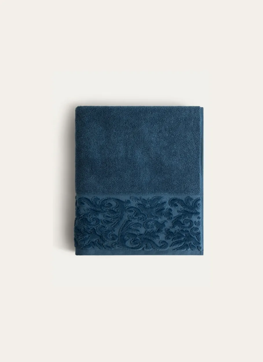 Drap de bain texturé avec liteau en velours ciselé. Un esprit chic à adopter chez vous. Matière 100% coton, qualité de 550 gr/m² : Une éponge extra moelleuse qui offre un pouvoir d’absorption et un confort exceptionnel. Dimensions (cm) : H150 x L100. Existe en plusieurs coloris.