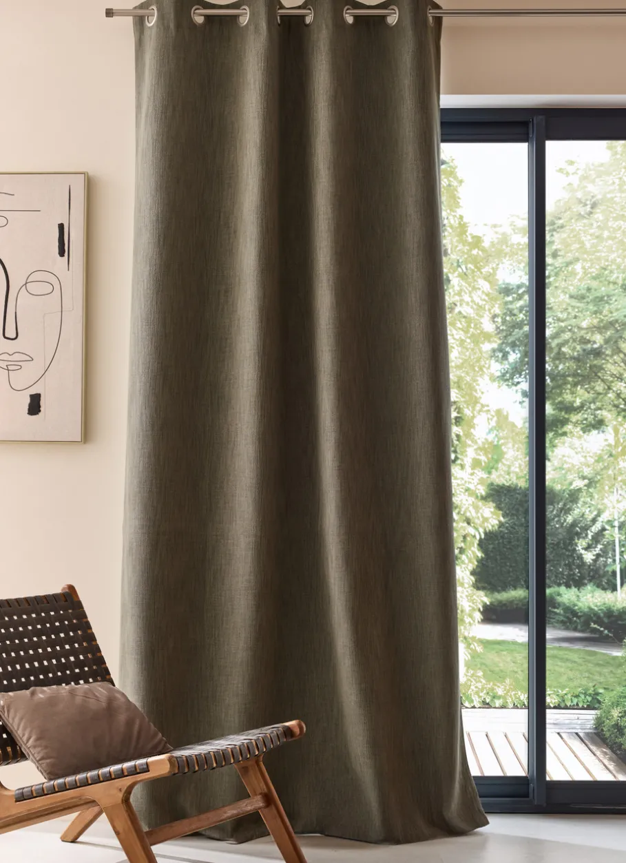 Rideau occultant à l’aspect naturel, contenant du lin. Son tissu épais bloque entièrement la lumière tout en apportant une touche élégante à la pièce. Sa hauteur (3 mètre) convient aux grandes fenêtres et baies vitrées. De plus, il est certifié Oeko-Tex. Vendu à l’unité. Dimensions (cm) : 135 x 300. Occultation : Empêche totalement le passage de la lumière. Finition : Œillets argent mat (diamètre 40 mm). Installation : À poser sur une tringle classique.