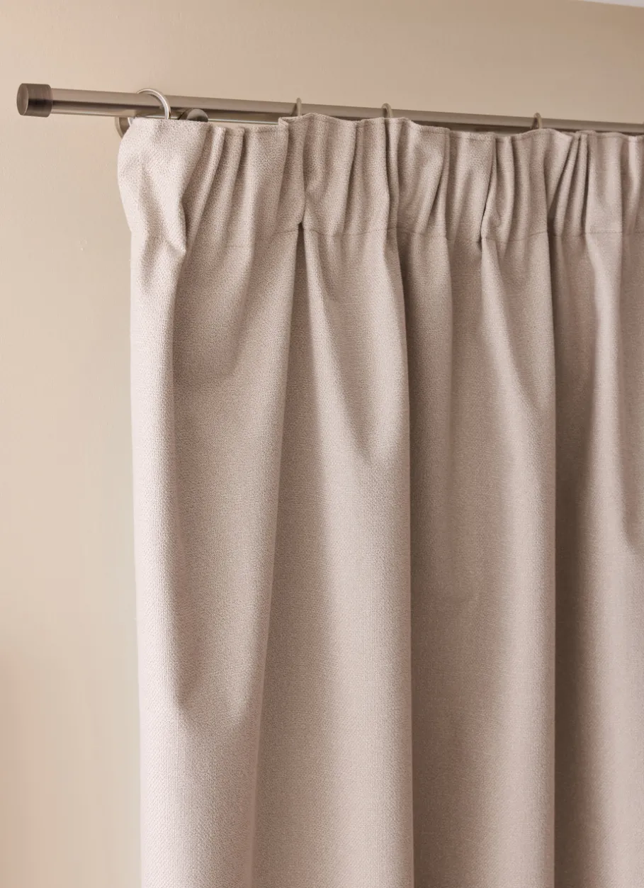 Ce rideau occultant allie élégance et performance avec son tissu texturé et son enduction acrylique au dos. Son toucher doux et son grammage élevé de 390 g/m² garantissent une tenue impeccable et une occultation optimale de la lumière, idéale pour créer une ambiance cosy et intime. Certifié OEKO-TEX®, il est conçu sans substances nocives, respectant votre santé et l’environnement. Finition galon fronceur blanc (hauteur 10 cm). Installation sur tringle rail ou classique avec crochets et anneaux (vendus séparément). Vendu à l’unité. Dimensions (cm) : H300 x L135 cm.