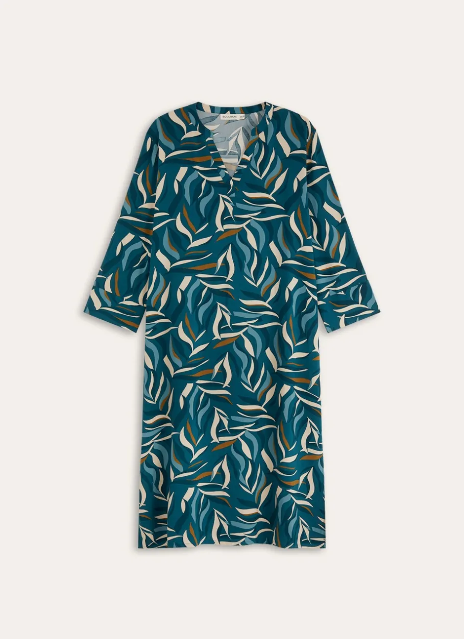 Pour un style élégant et durable, notre robe longue en viscose EcoVero imprimé feuillage multicolore est parfaite pour toutes les occasions. Existe de la taille 34/36 à la taille 50/52.