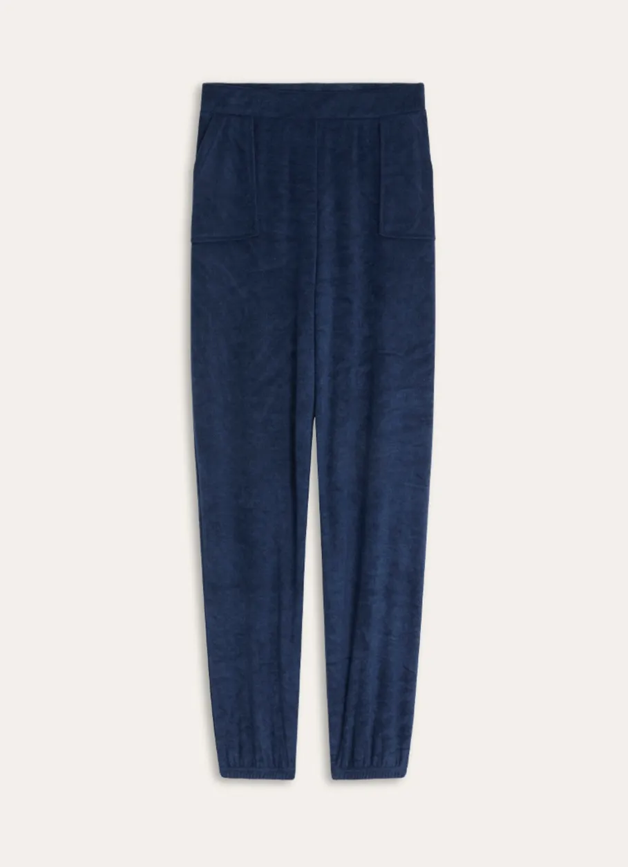 Optez pour ce pantalon confortable en matière éponge, idéal pour vos moments de détente ou pour un look décontracté au quotidien. Sa texture douce et agréable au toucher vous garantit un confort optimal. Disponible dans un coloris encre, ce pantalon s’adapte à toutes vos tenues.