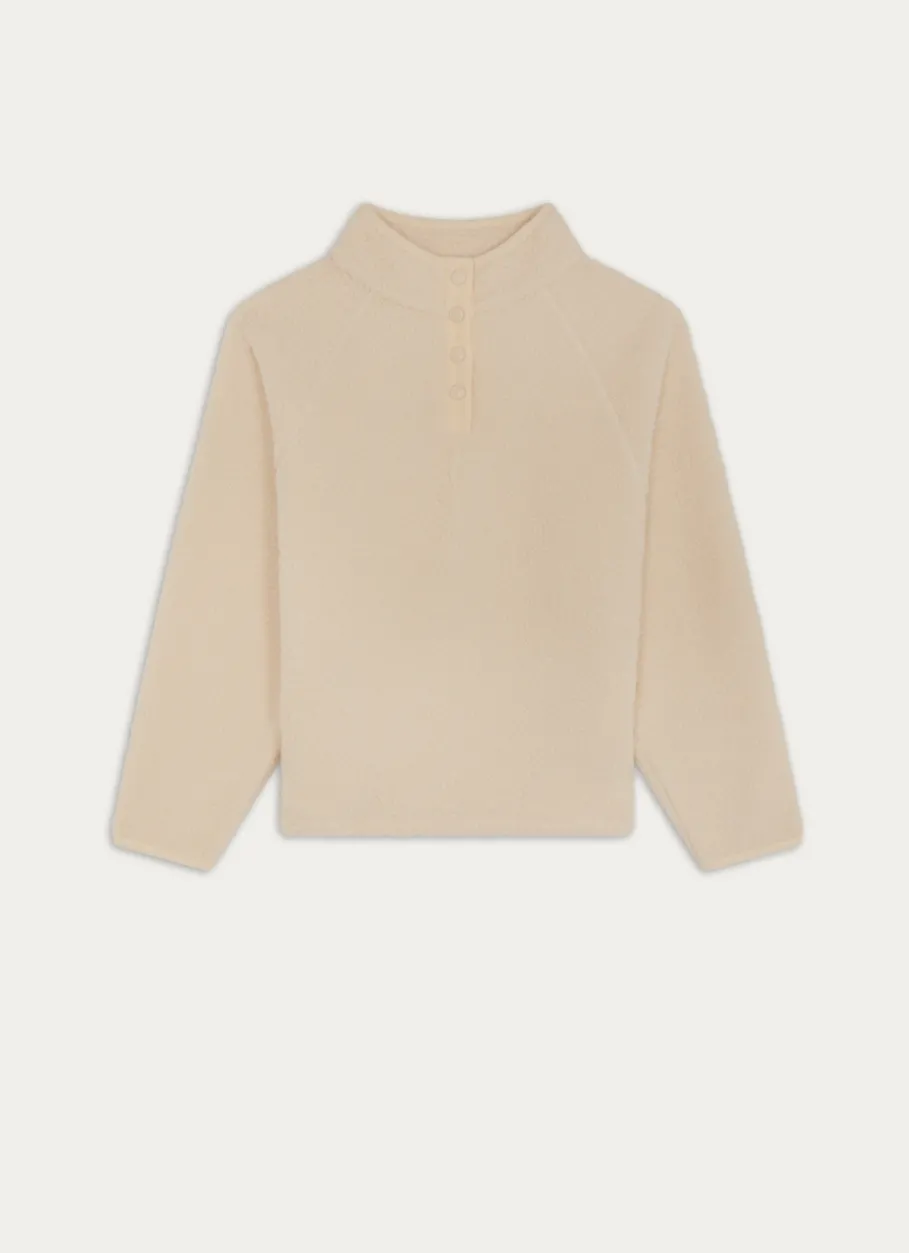 Ce sweat-shirt à manches longues associe le moelleux de la moumoute au charme du velours milleraies pour un look à la fois cosy et tendance. Son col camionneur boutonné permet d’ajuster l’ouverture selon vos envies, pour un confort modulable tout au long de la journée. Idéal pour les journées fraîches ou les soirées cocooning. Disponible du 34/36 au 46/48.