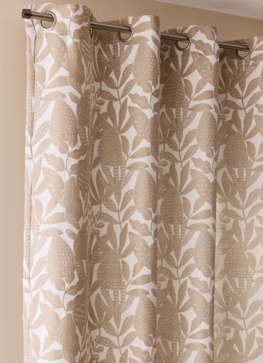 Ce rideau en jacquard présente un motif végétal contrasté créé par le tissage, qui apporte de la texture et du relief. Souple mais lourd, il occultera légèrement la lumière tout en préservant votre intimité. Le fil chenille utilisé accentue le relief du motif, ajoutant une dimension subtile à l’ensemble. Parfait pour un intérieur élégant et apaisant.Vendu à l’unité. Dimensions (cm) : 140 x 260. Finition : Œillets argent mat (diamètre 40 mm).