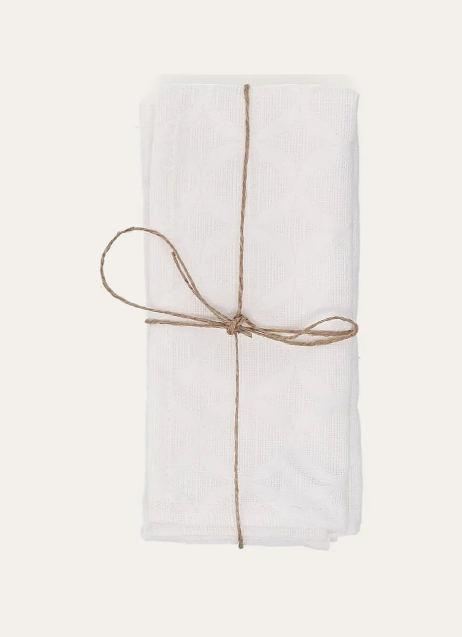 Lot de 2 serviettes de table en jacquard mélangé coton et polyester (190g/m²) avec petits motifs géométriques. Pour habiller votre table avec beaucoup d’élégance. Produit fabriqué en Turquie. Existe en plusieurs coloris. Dimensions (cm) : H40 x L40