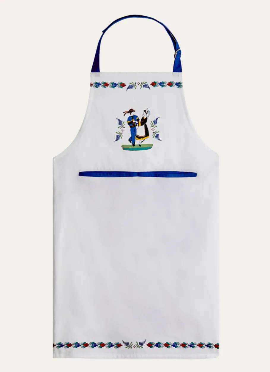 Tablier en coton avec motif imprimé d’un couple breton. À adopter dans toutes les régions de France ! Produit certifié Oeko-Tex®. Dimensions (cm) : L5 x L70.Toile 215g/m². Poids du produit fini: 160gr. Fabriqué en Inde.