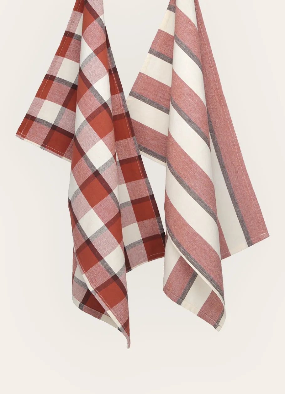 Bouchara Torchon, Essuie-Mains^LOT DE 2 TORCHONS CARREAUX & RAYURES