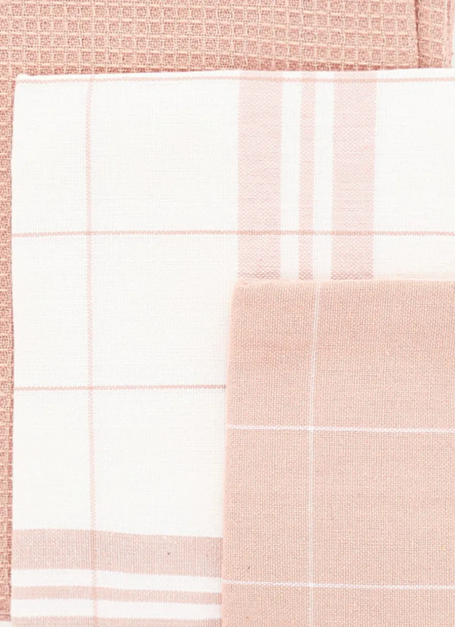 Lot de 3 torchons en coton : 2 à carreaux, tissés fil-teint et 1 torchon uni en nid d’abeille. Dimensions (cm) : H70 x L45. Existe en plusieurs coloris.