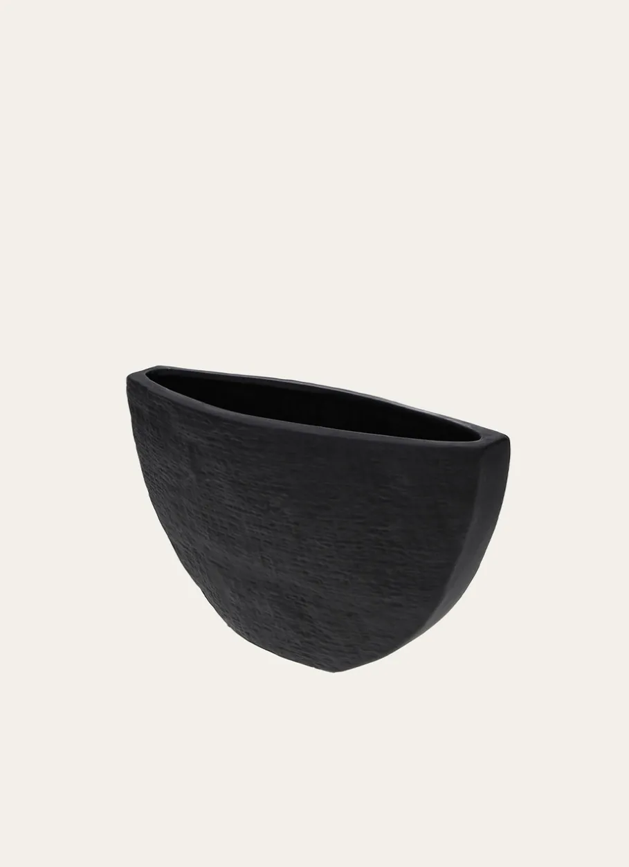Vase plat en forme de demi-lune avec un effet texturé. Parfait pour sublimer vos fleurs avec style. Dimensions (cm) : 26 X 6 X 14,5.