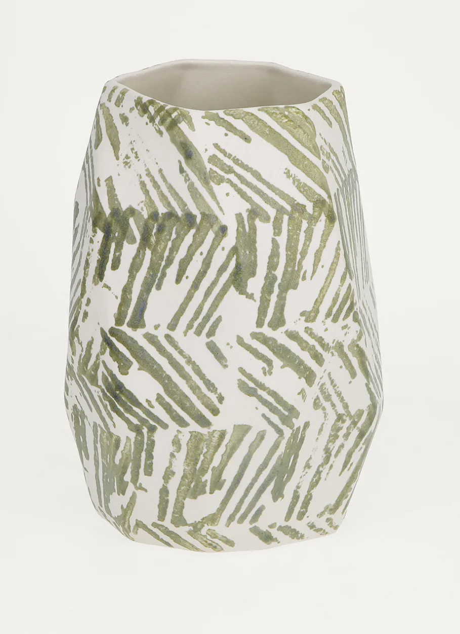 Apportez une touche printanière et fraîche à votre intérieur avec ce vase en faïence mate à multiples facettes, délicatement orné de traits peints à la main. Parfait pour accueillir des bouquets de fleurs séchées ou artificielles, il ajoutera une note florale et légère à votre décoration. Disponible en plusieurs tailles et finitions (unie ou avec des traits), il s’adapte à toutes les ambiances. Ce vase allie artisanat et charme naturel pour embellir votre espace avec délicatesse.Dimensions (cm) : 15,50 X 15,00 X H21,00