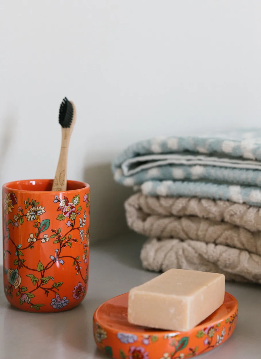 Apportez une touche d’élégance orientale à votre salle de bain avec ce porte-brosses à dents en céramique décoré de motifs floraux multicolores délicats. Sa finition brillante sublime les détails stylisés, tandis que son format compact accueille brosses à dents et accessoires avec praticité. Une pièce décorative et fonctionnelle, idéale pour créer un univers raffiné jusque dans les moindres détails. Pour une salle de bain harmonieuse et sophistiquée, associez-le au distributeur de savon et au porte-savon assortis de la même collection. Dimensions (cm) : H11.2 x D7.3.