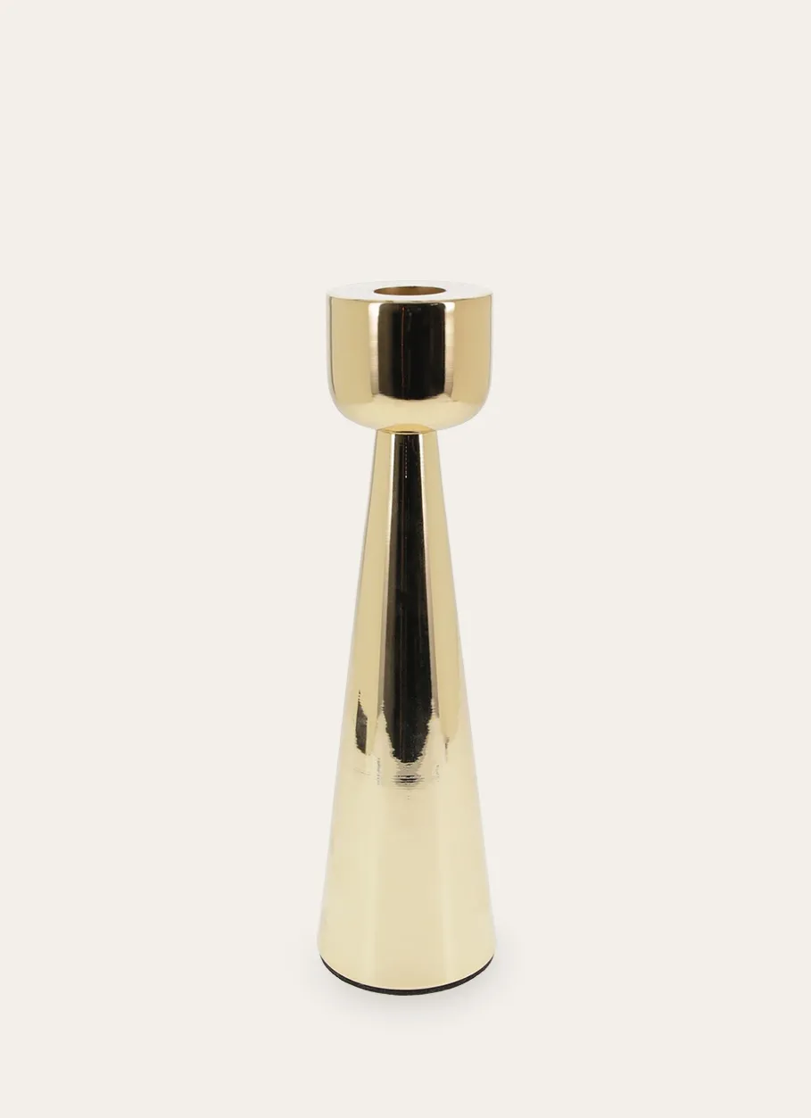 Apportez une touche chic et lumineuse à votre intérieur avec ce bougeoir en métal doré. Idéal pour bougies flambeau, il apporte élégance et modernité à vos tables ou étagères.Dimensions (cm) : Ø6 x 21,5