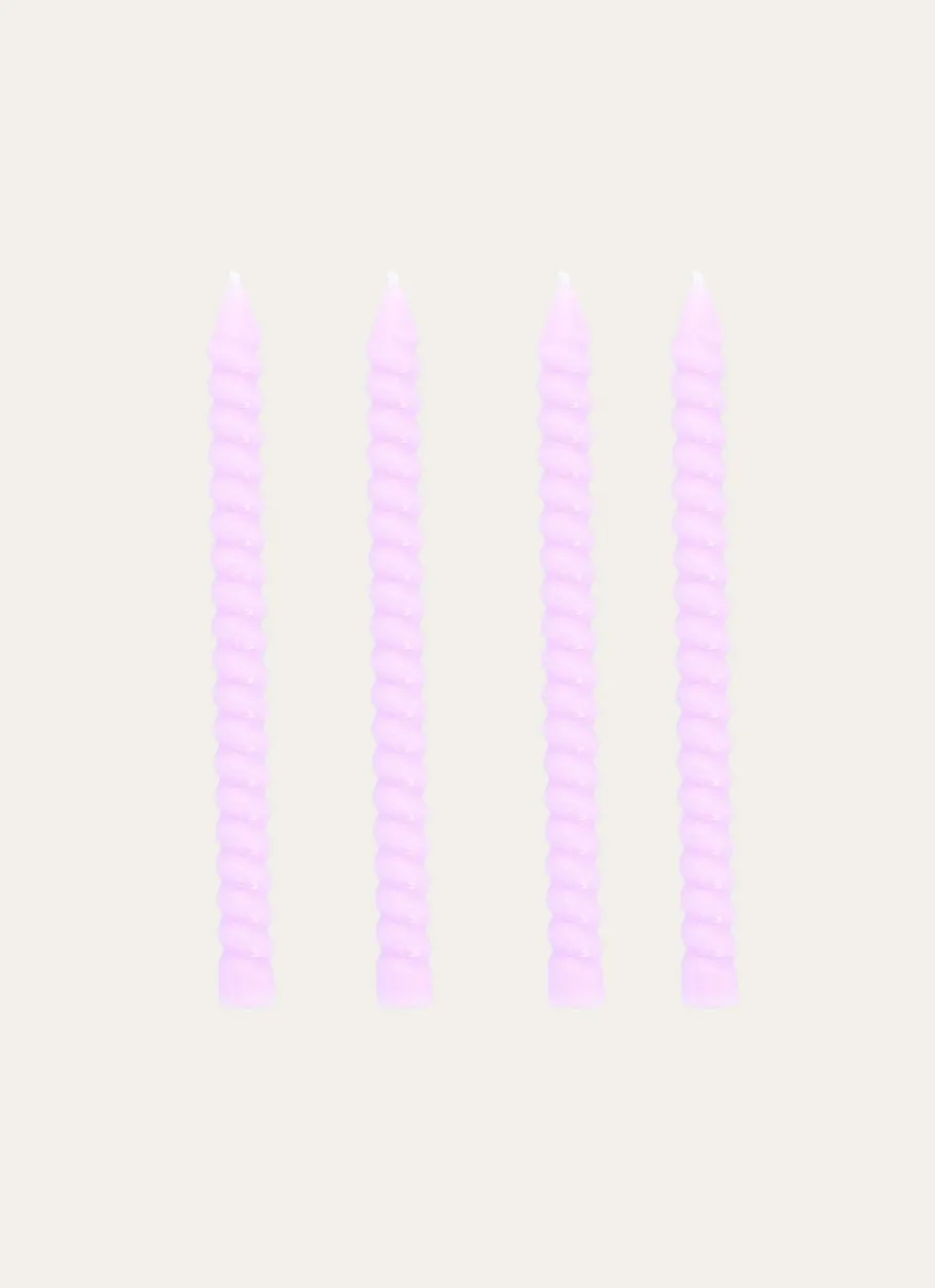Lot de quatre mini bougies torsadées. On adore ! Dimensions (cm) : 18 x 1,4 Existent en plusieurs coloris.