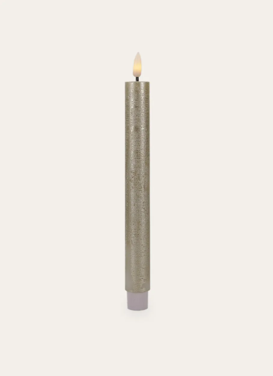 Apportez élégance et ambiance chaleureuse à votre intérieur avec ce lot de 2 bougies flambeau LED, reproduisant parfaitement la lueur vacillante d’une vraie flamme. Idéal pour décorer vos tables ou créer une atmosphère cosy en toute sécurité, sans fumée ni risque de brûlure.Couleur LED : Jaune. Fonctionnement : 2 piles AAA par bougie (non incluses). Interrupteur : Bouton on/off. Dimensions (cm) : D2 × H21,8.