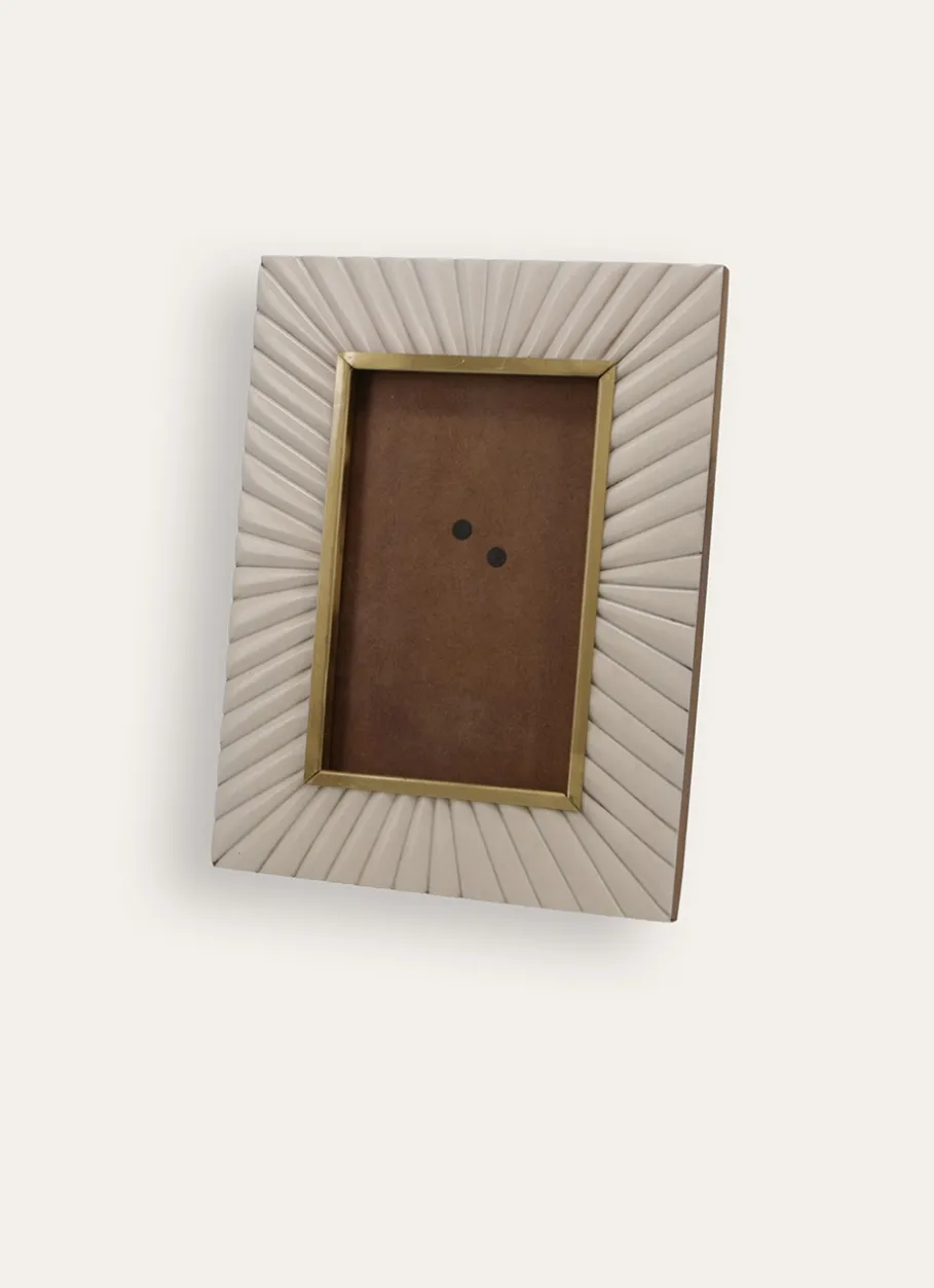 Mettez en valeur vos souvenirs avec ce cadre photo élégant en résine relief, agrémenté d’un liseret doré pour une touche raffinée. Son design subtil et sophistiqué s’intègre harmonieusement dans tous les styles d’intérieur, apportant une note chic et intemporelle.Idéal pour vos clichés préférés, il offre un format intérieur de 9 x 14 cm pour la photo, tandis que la taille complète du cadre est de 16,5 x 21,5 cm. Conçu avec soin, il associe une structure en résine et un support en carton rigide pour un produit léger mais robuste. Dimensions (cm) : Cadre intérieur : 9 x 14. Cadre extérieur : 16,5 x 21,5