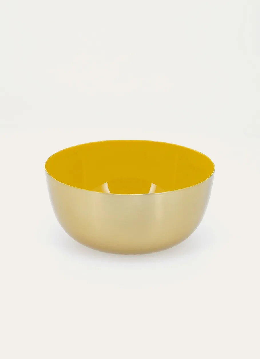 Coupelle en métal doré brossé avec revêtement intérieur coloré et laqué. Élégante et raffinée, cette coupelle est parfaite pour présenter vos apéritifs ou des gourmandises. Passe au lave-vaisselle. Proposée dans plusieurs coloris. Dimensions (cm) : H5.5 x D12
