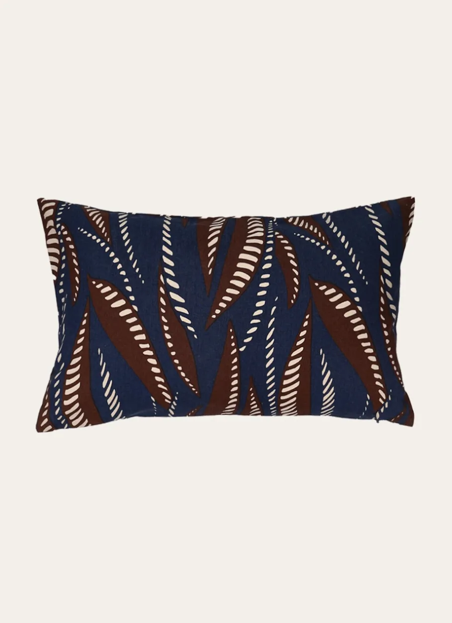 Ce coussin est imprimé d’un motif de feuillage abstrait sur une toile de coton. Les deux faces sont identiques. Déhoussable à l’aide d’une fermeture à glisière invisible. Vendu avec son intérieur. Produit certifié Oeko-Tex®. Dimensions (cm) : 30 x 50.