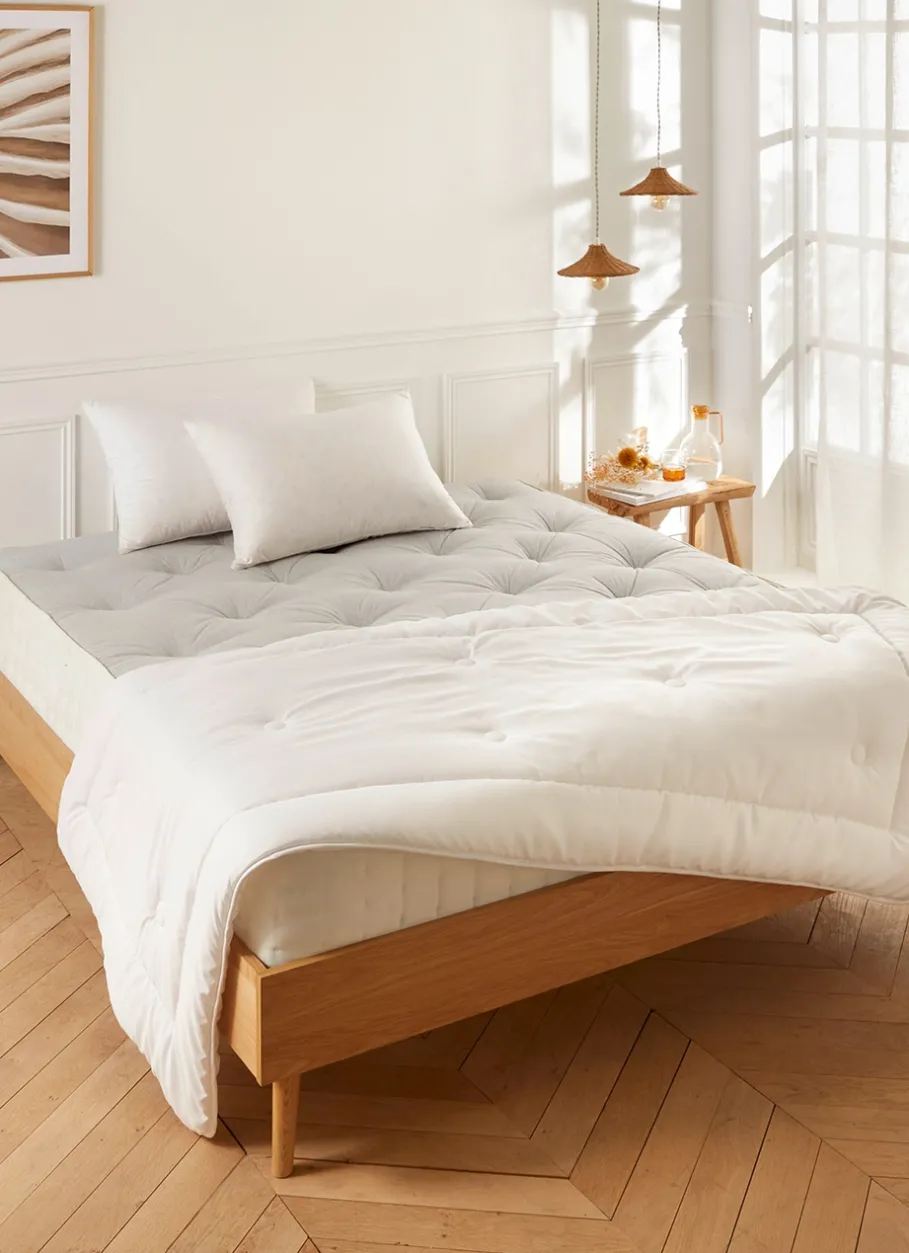 Sublimez votre lit avec notre édredon de garnissage au moelleux enveloppant, véritable invitation au confort et à l’élégance. Pensé pour s’associer avec nos housses d’édredon, il vous permet de métamorphoser votre décoration selon vos envies, tout en apportant une touche chaleureuse et sophistiquée à votre chambre. Son garnissage 100 % polyester recyclé en fibres creuses siliconées (300 g/m²) offre un volume généreux et une douceur incomparable. Facile à entretenir grâce à son lavage en machine à 30°, et certifié Oeko-Tex® pour un sommeil sain et responsable, il est le compagnon idéal de vos instants cocooning. À disposer en bout de lit pour une finition décorative et cosy. Dimensions (cm) : H85 x L200.