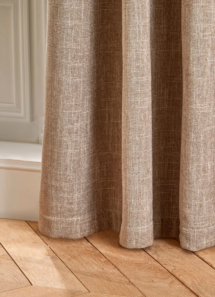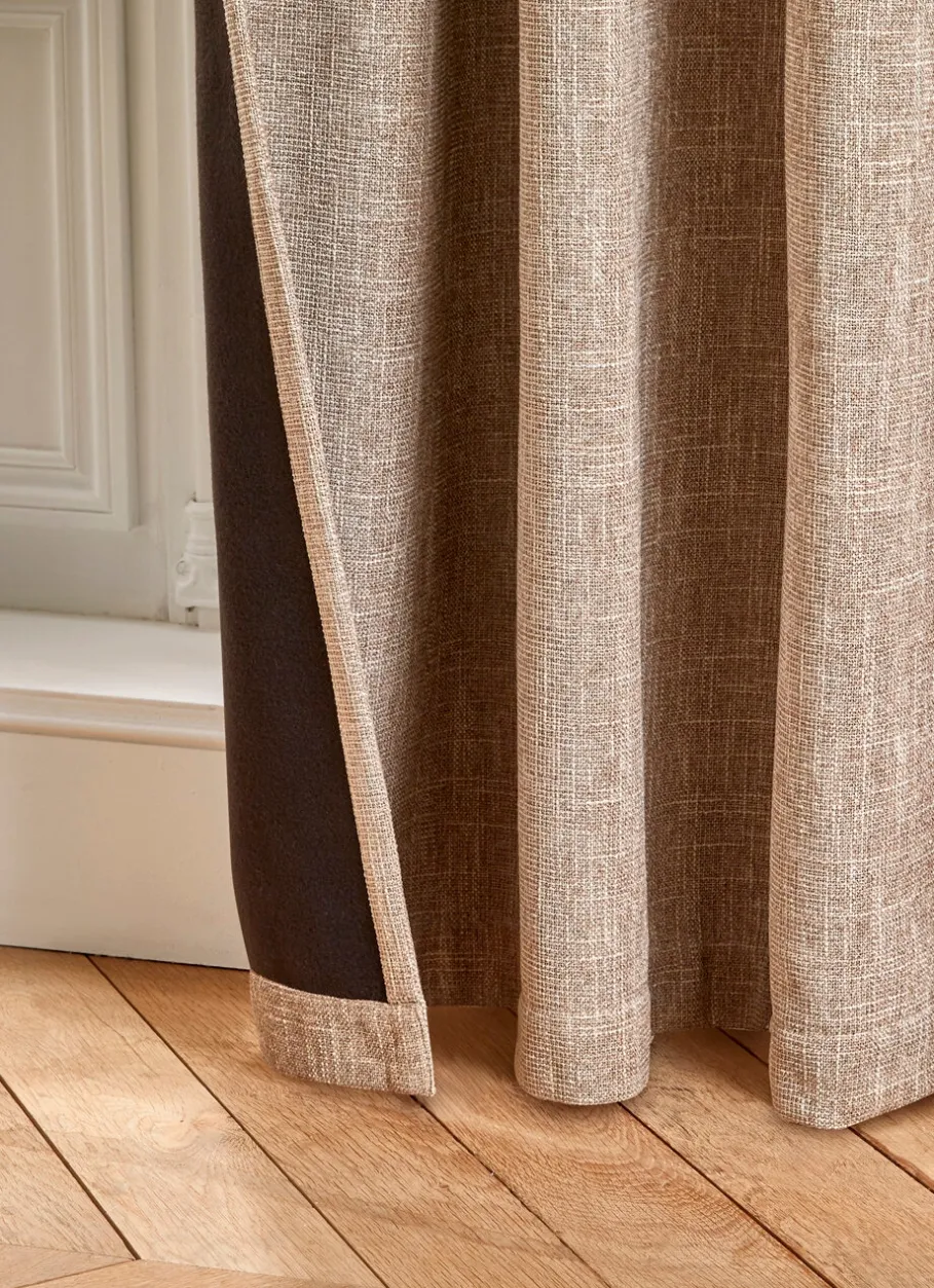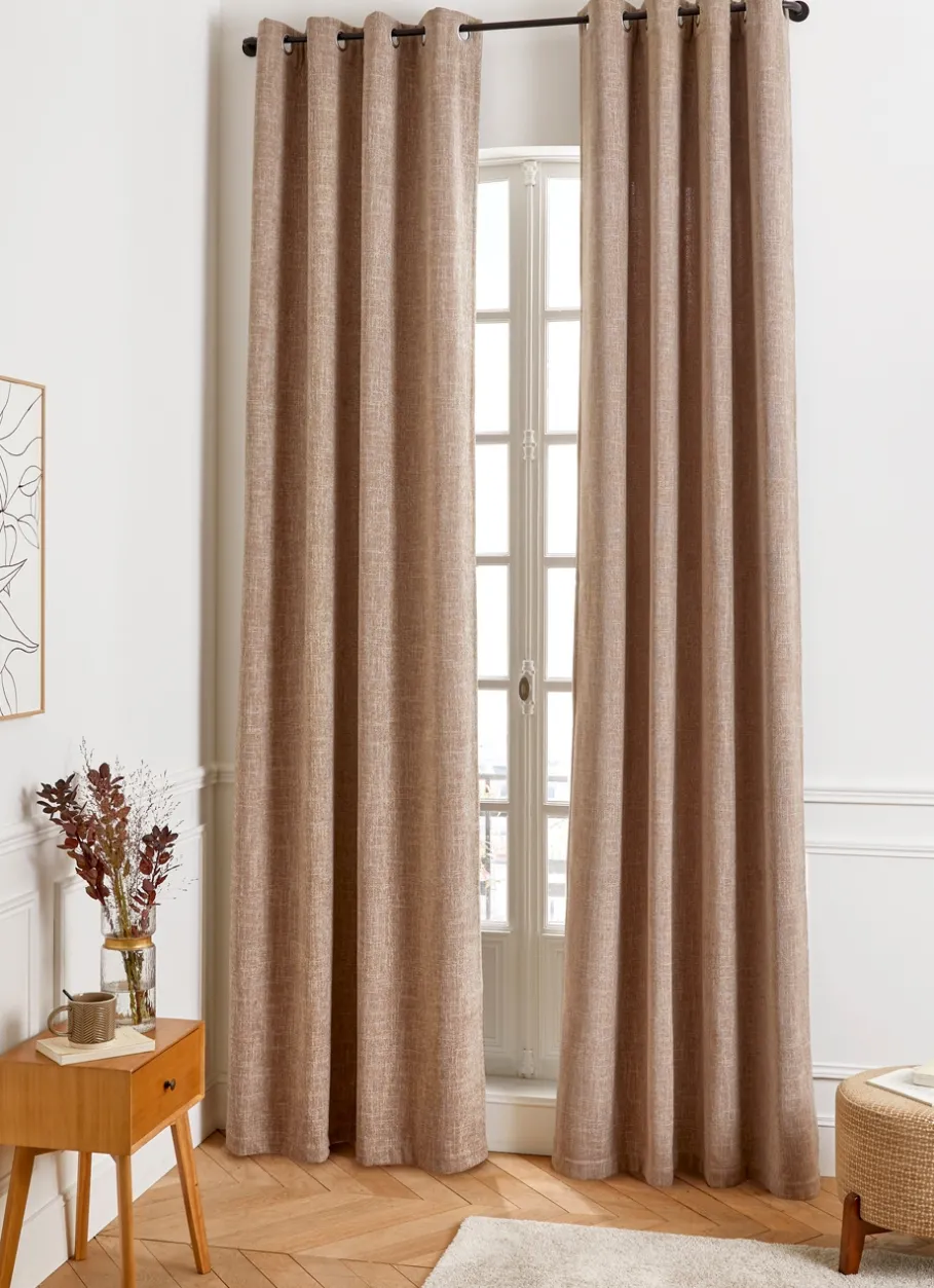 Ce rideau au tissage flammé séduit par son look décontracté et sa texture naturelle, idéale pour créer une ambiance chaleureuse et authentique. Grâce à sa doublure en polaire, il contribue à réguler la température de votre pièce en faisant barrière à l’air chaud et froid provenant de l’extérieur. Sa hauteur généreuse de 300 cm permet d’habiller avec élégance les fenêtres des grandes hauteurs sous plafond. Il est équipé de 8 œillets en métal finition argent mat (diamètre 40 mm) pour une pose facile et un tombé impeccable. Certifié OEKO-TEX®, il respecte les peaux sensibles et répond aux exigences environnementales. Disponible en plusieurs coloris. Vendu à l’unité. Dimensions (cm) : H300 x L135.