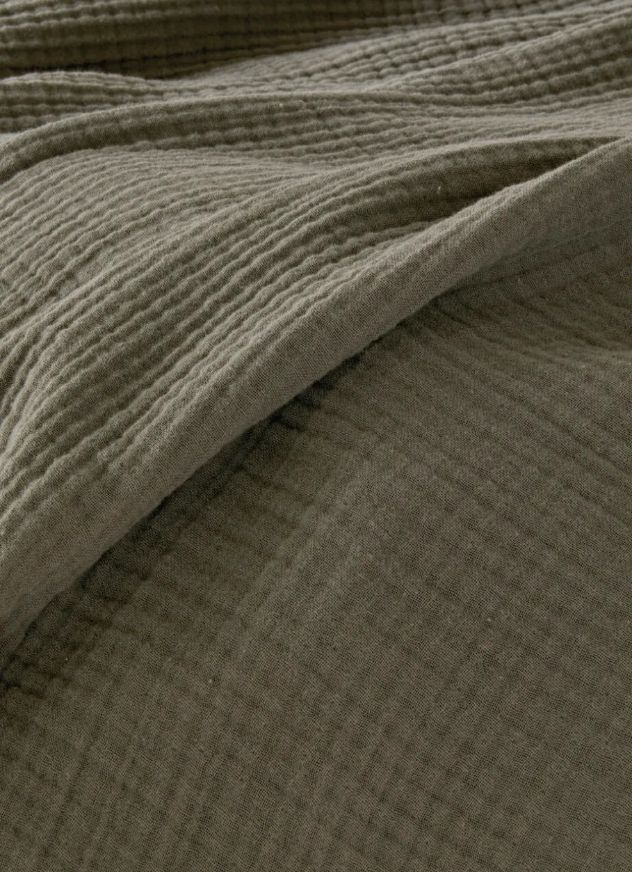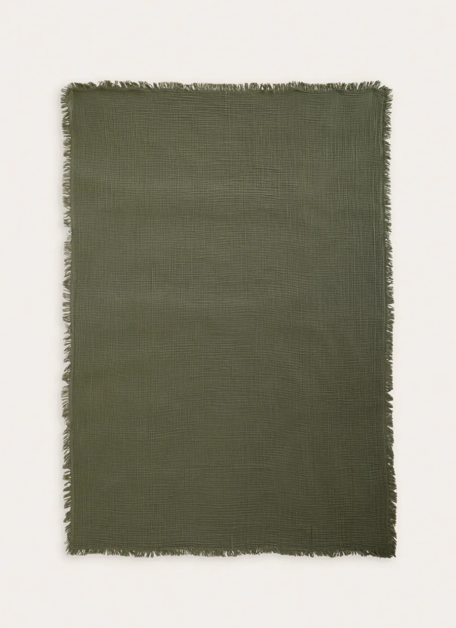 La gaze de coton est une étoffe très fine, appréciée pour sa douceur, sa légèreté et son effet brut, à l’esprit naturel. Son tissage de fils écarts, croisés, rendent ce tissu lâche, léger et légèrement transparent. Pour le linge de lit, plusieurs couches de gaze superposées en font un tissu plus robuste et opaque. La gaze de coton est un indispensable de la maison grâce à sa facilité d’entretien et son grand confort. Son apparence naturellement froissée, gaufrée et sa douceur s’accentuent au fur et à mesure des lavages.