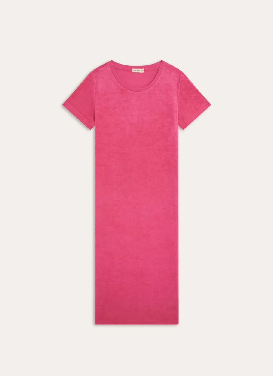 Cette robe longue à manches courtes est réalisée en matière éponge pour un confort maximal. Parfaite pour les journées décontractées ou pour se détendre à la maison, elle offre une sensation de douceur tout en étant légère et agréable à porter. Disponible dans des teintes vibrantes, elle apportera une touche de fraîcheur à votre garde-robe. Tailles disponibles : 34/36 à 50/52.