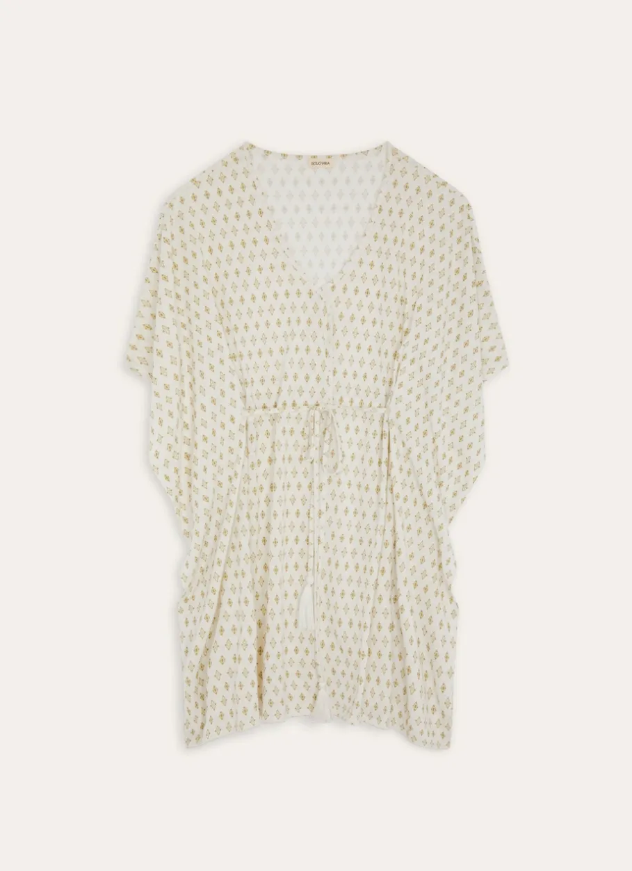 Apportez une touche moderne à votre garde-robe avec cette tunique en maille polyester imprimée. Dotée d’un cordon de serrage à la taille, elle offre une coupe ajustable et un confort optimal. Son imprimé AOP Brique fond écru ou AOP Vert fond écru apportera une note de fraîcheur et d’élégance à votre look. Cordon de serrage à la taille pour un ajustement parfait. Tailles disponibles : S/M et L/XL.