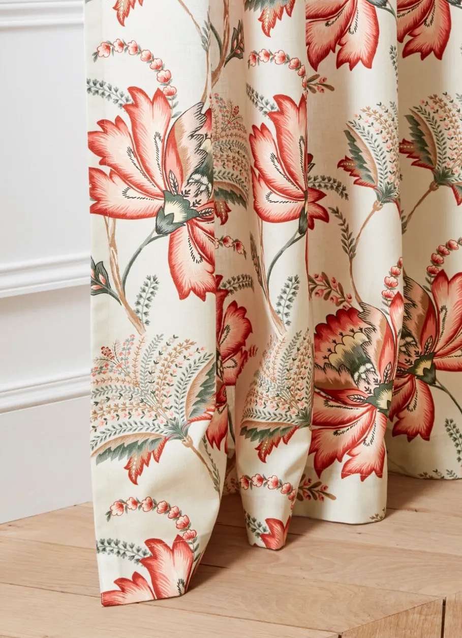 Apportez une touche d’exotisme raffiné à votre intérieur avec ce rideau imprimé de grands motifs floraux traditionnels indiens. Confectionné dans un mélange de coton et lyocell, il offre un tombé élégant et une texture naturelle. Sa densité généreuse de 288 g/m² assure un beau maintien tout en filtrant subtilement la lumière. Doté de 8 œillets en métal finition canon de fusil (diamètre 40 mm), il s’installe facilement sur une tringle standard. Certifié Oeko-Tex®, ce rideau garantit l’absence de substances nocives pour un intérieur sain et stylé. Vendu à l’unité. Dimensions (cm) : H260 x L135.
