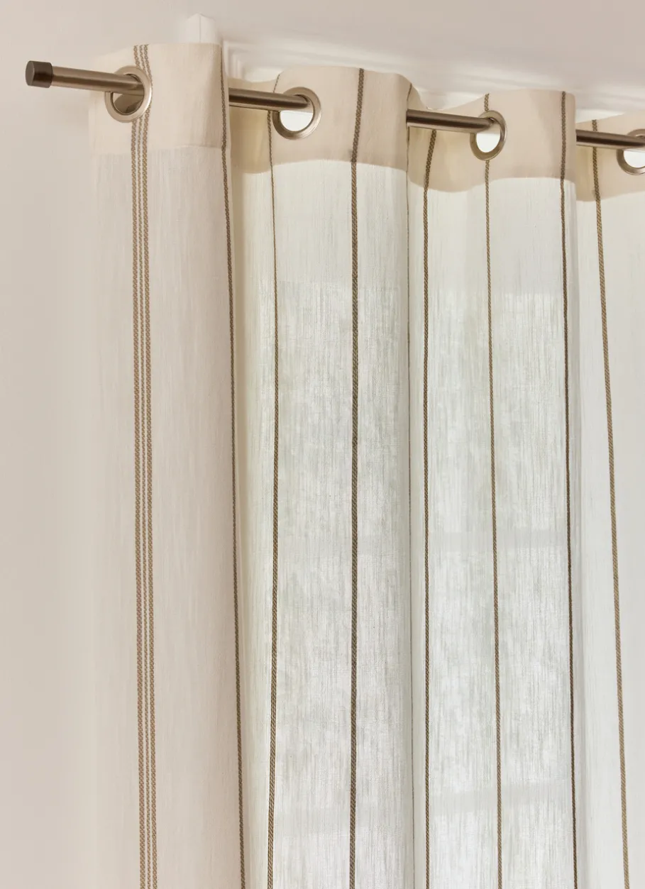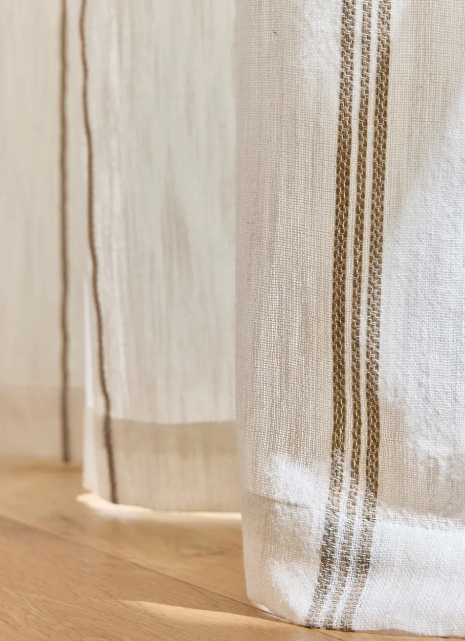 Ce rideau en coton léger et tamisant ajoute une touche élégante à votre intérieur avec ses fines rayures contrastées en jacquard. Il filtre délicatement la lumière, créant une ambiance douce et apaisante. Certifié Oeko-Tex, il est conçu pour respecter des normes environnementales strictes. Vendu à l’unité. Dimensions (cm) : 140 x 260.