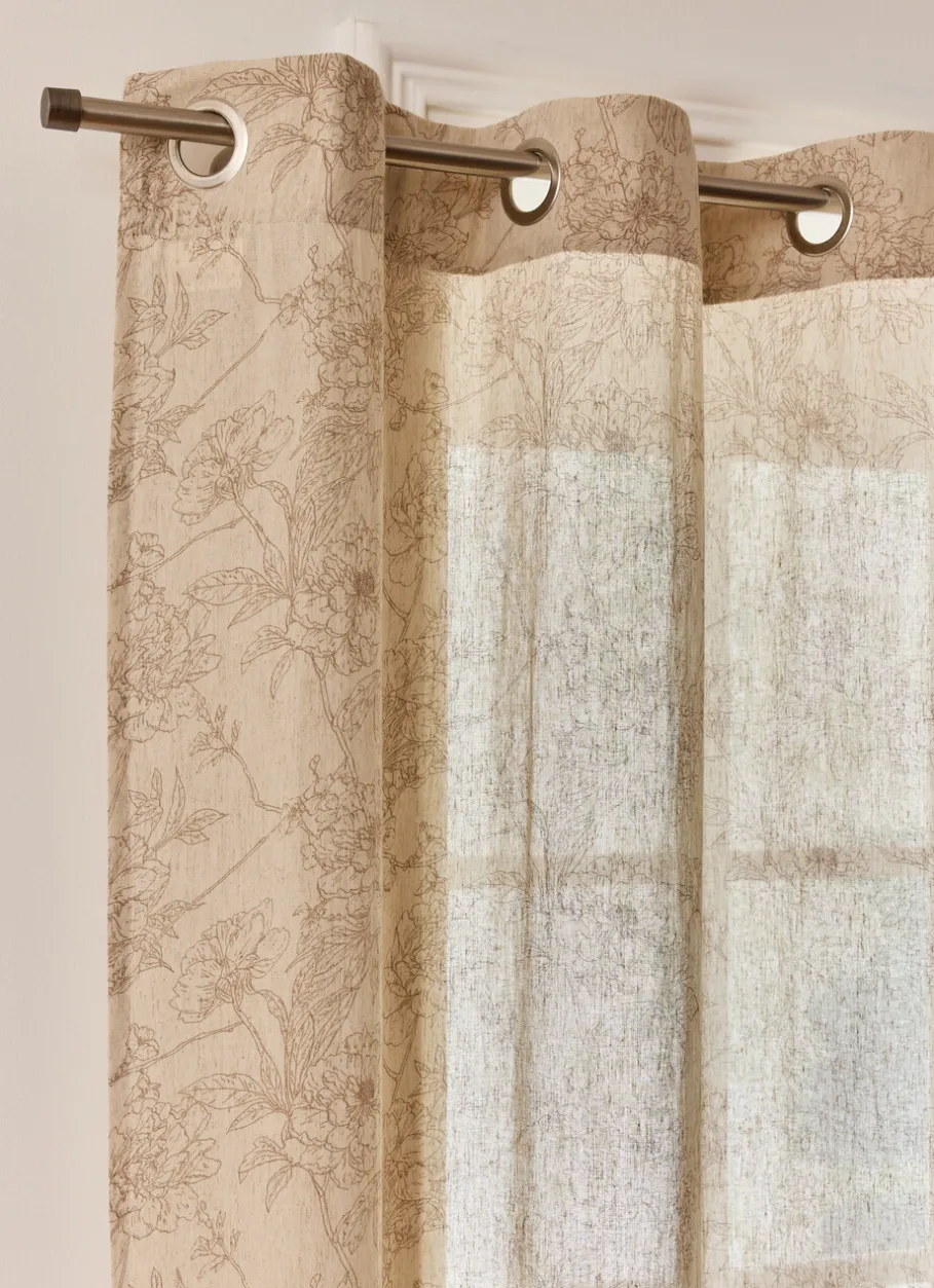 Ce rideau fluide, imprimé de fleurs délicates, est composé d’une matière de très grande qualité, offrant une souplesse parfaite pour une ambiance légère et élégante. Son mélange de coton, lyocell et lin le rend à la fois doux et agréable au toucher, idéal pour ajouter une touche naturelle à votre intérieur. Vendu à l’unité. Dimensions (cm) : 140 x 260. Finition : Œillets argent mat (diamètre 40 mm).