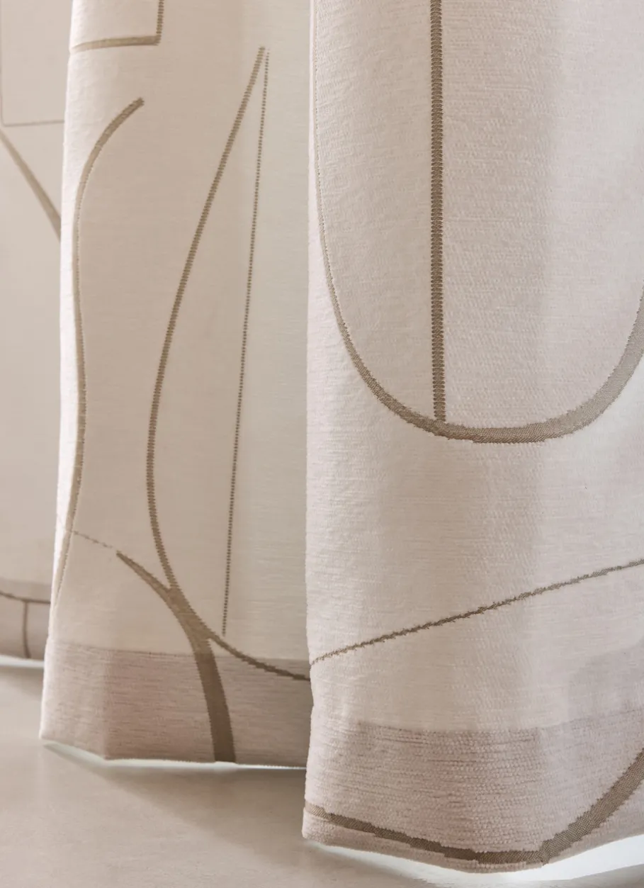 Ce rideau à motif géométrique contrasté, créé grâce au tissage jacquard, ajoute une dimension élégante et contemporaine à votre espace. Souple mais lourd, il occulte légèrement la lumière tout en préservant l’intimité de votre intérieur. Le fil chenille utilisé lui confère un léger relief et une texture douce au toucher. Vendu à l’unité. Dimensions (cm) : 140 x 260. Finition : Œillets argent mat (diamètre 40 mm).