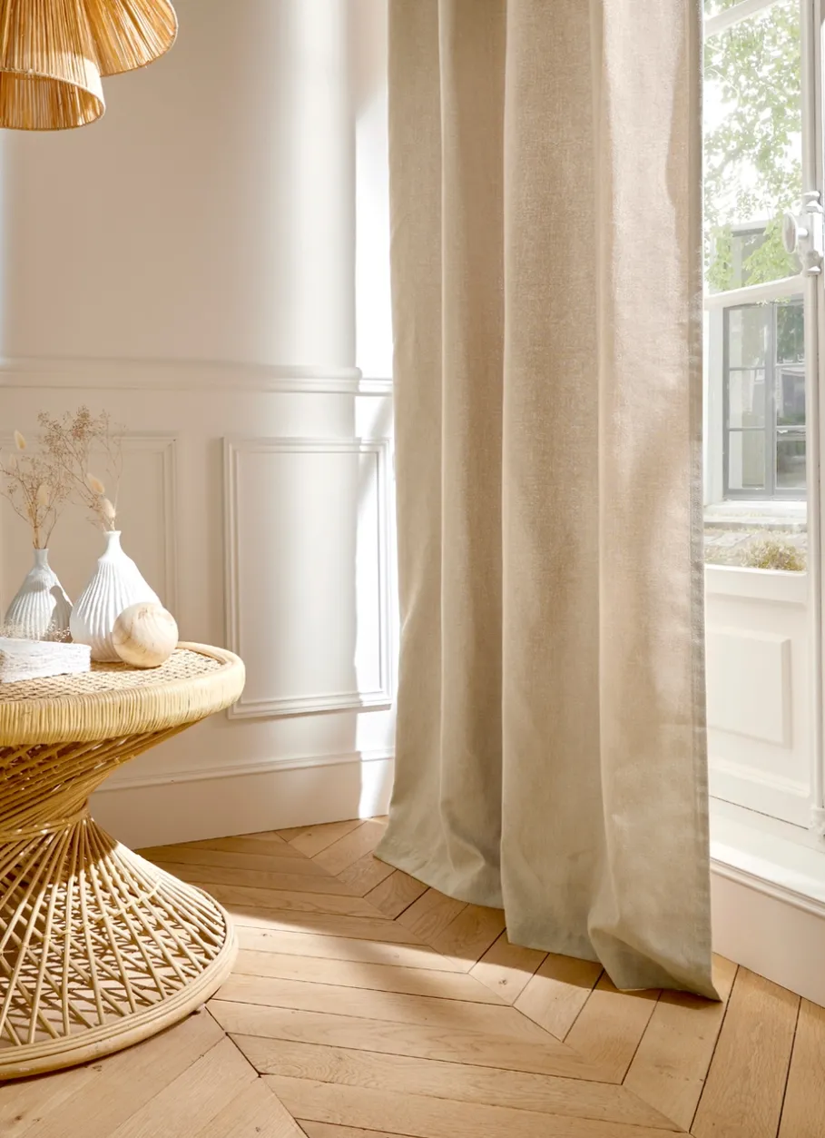 Rideau uni avec un effet gratté qui lui apporte une douceur au toucher. Ce rideau donnera un look chaleureux à votre intérieur. S’adapte aux grandes hauteurs sous plafond. Finition avec œillet de couleur argent mat avec une dimension de 40 mm. Vendu à l’unité. Certifié Oeko-Tex®. Dimensions (cm) : 140 X 300