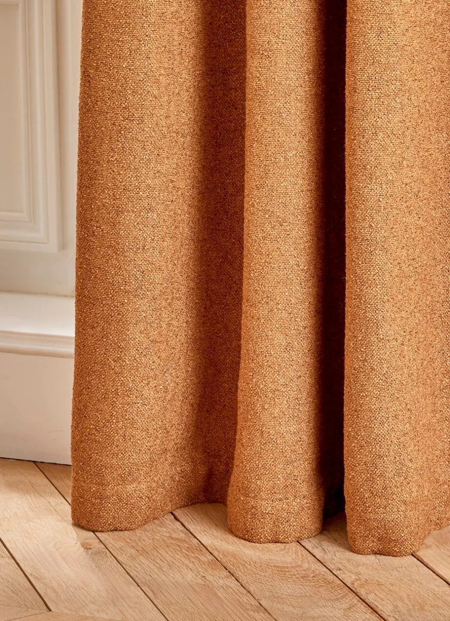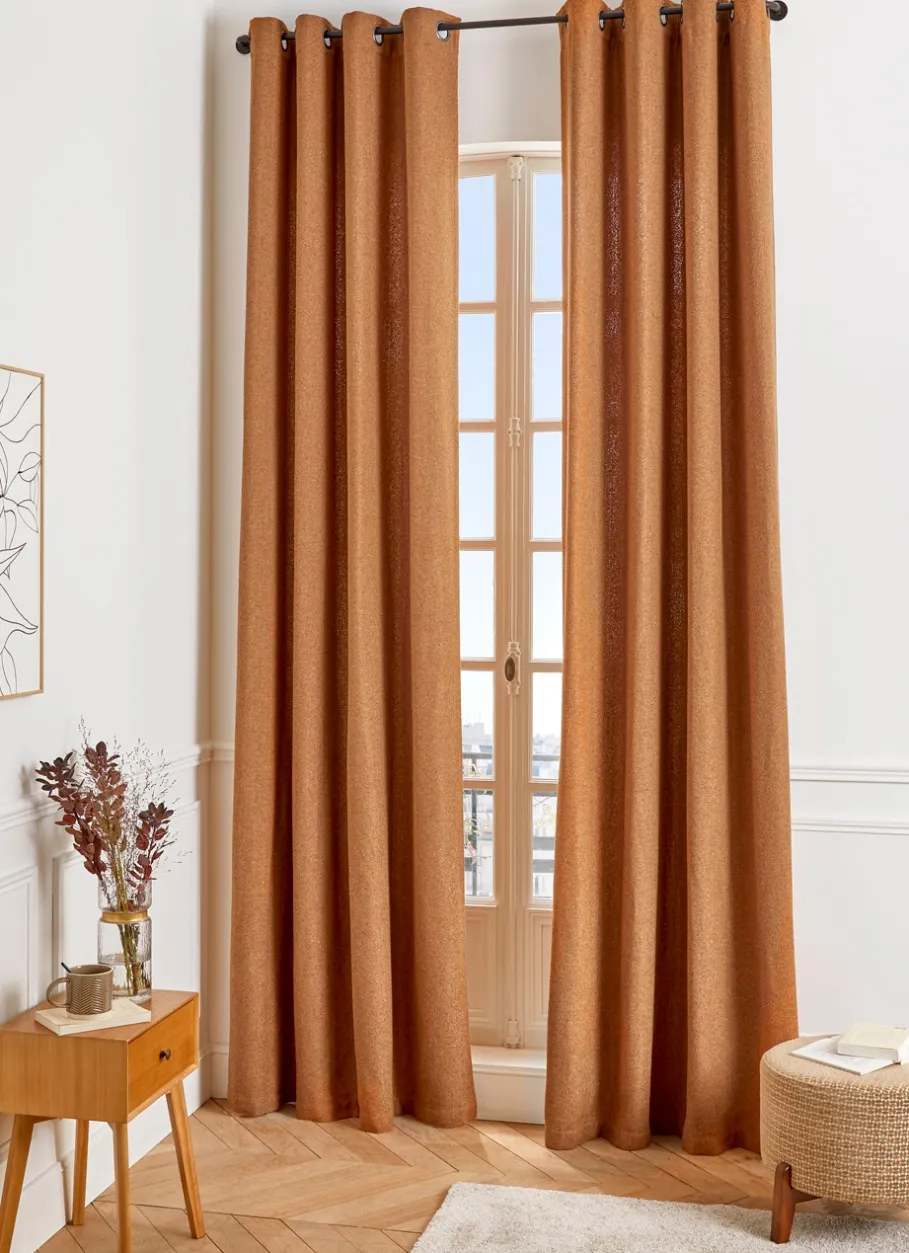 Apportez une note de douceur et de raffinement à votre intérieur avec ce rideau grande hauteur en bouclette légère, proposé dans un chaleureux coloris caramel. Son tissage délicat et sa texture subtile créent un effet tamisant, parfait pour préserver l’intimité tout en laissant filtrer une lumière naturelle. Doté de 8 œillets métalliques finition canon de fusil (diamètre 40 mm), il s’installe aisément sur une tringle standard et offre une glisse fluide. Avec une densité de 280 g/m², il conjugue légèreté et tenue impeccable. Vendu à l’unité, ce rideau convient aussi bien aux salons, chambres ou bureaux, et s’intègre avec élégance à tous les styles de décoration. Dimensions : H300 x L140 cm.