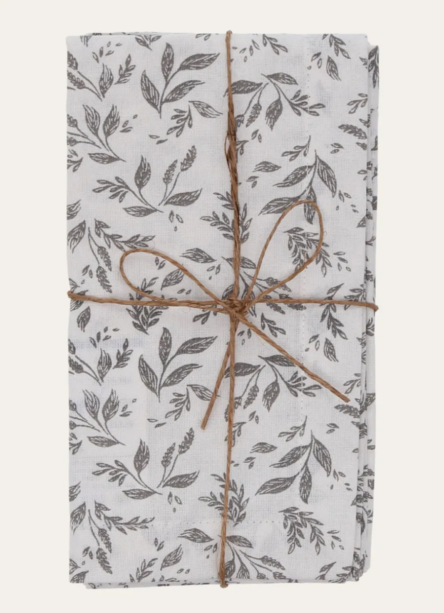 Lot de 2 serviettes de table en coton imprimé d’un motif végétal, un indispensable pour embellir votre table. Avec un grammage de 190g/m², ces serviettes offrent une qualité appréciable. Le poids du produit fini est de 80g. Certifié OEKO-TEX®. Dimensions (cm) : 40.