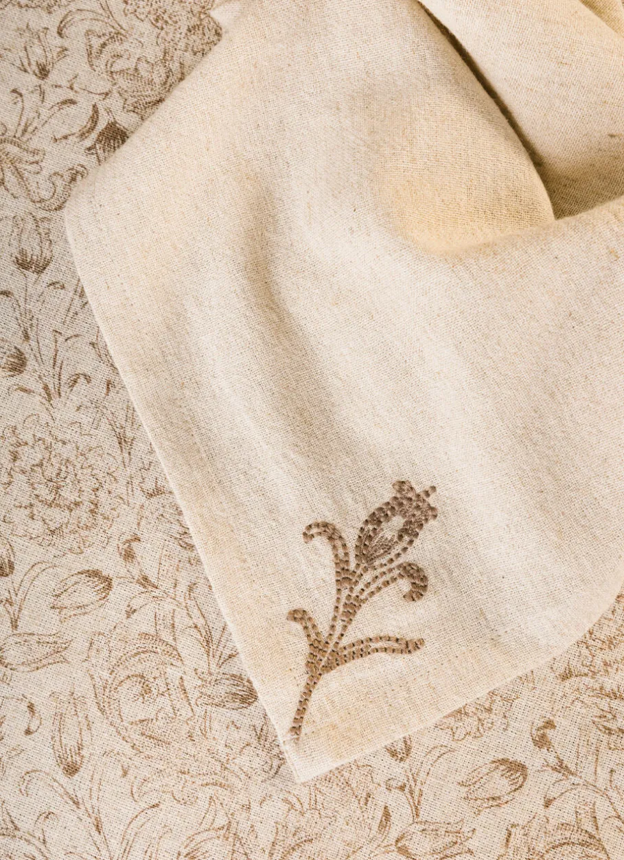 Bouchara Serviette De Table|Table De Noël^LOT DE 2 SERVIETTES EN COTON-LIN IMPRIMÉ FLORAL