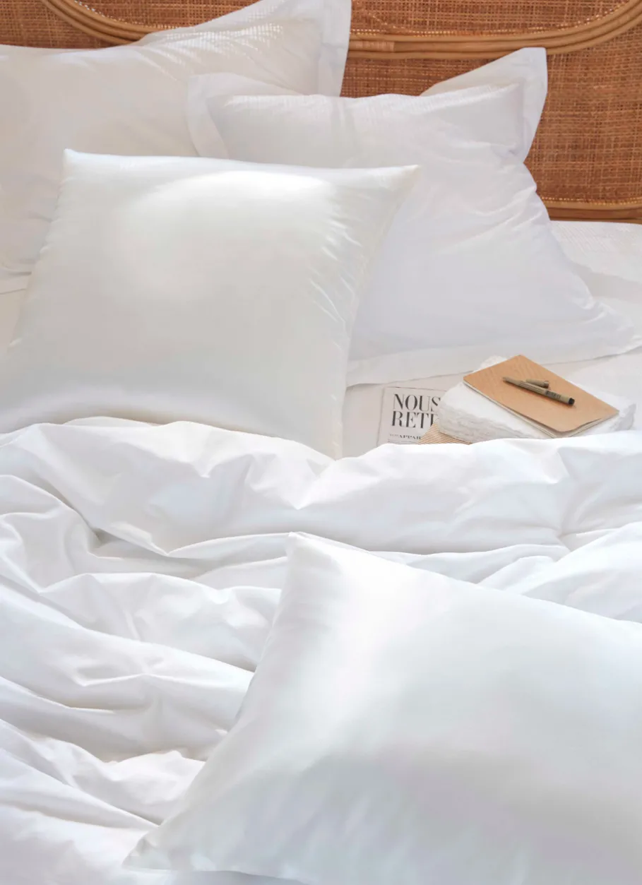 Offrez à votre peau et à vos cheveux le luxe d’un sommeil réparateur grâce à cette taie d’oreiller en soie naturelle vendue à l’unité dans son coffret raffiné. Thermorégulatrice et antibactérienne, elle favorise l’absorption de vos soins nocturnes et préserve l’éclat de votre teint. Fini les frictions et l’électricité statique : votre chevelure se réveille disciplinée, lisse et soyeuse. Inspirée des rituels beauté des icônes d’élégance, elle transforme vos nuits en parenthèses de douceur infinie. Soie premium 19 mommes (82 gr/m²), douce et résistante. Facile d’entretien, pour un confort quotidien. Coupe sac avec rabat, finition soignée. Disponible en formats carré 65×65 cm et rectangulaire 50×70 cm. Proposée dans plusieurs coloris élégants pour s’adapter à tous les styles. Un indispensable beauté pour celles et ceux qui veulent dormir comme dans un rêve… sans jamais froisser leur éclat.