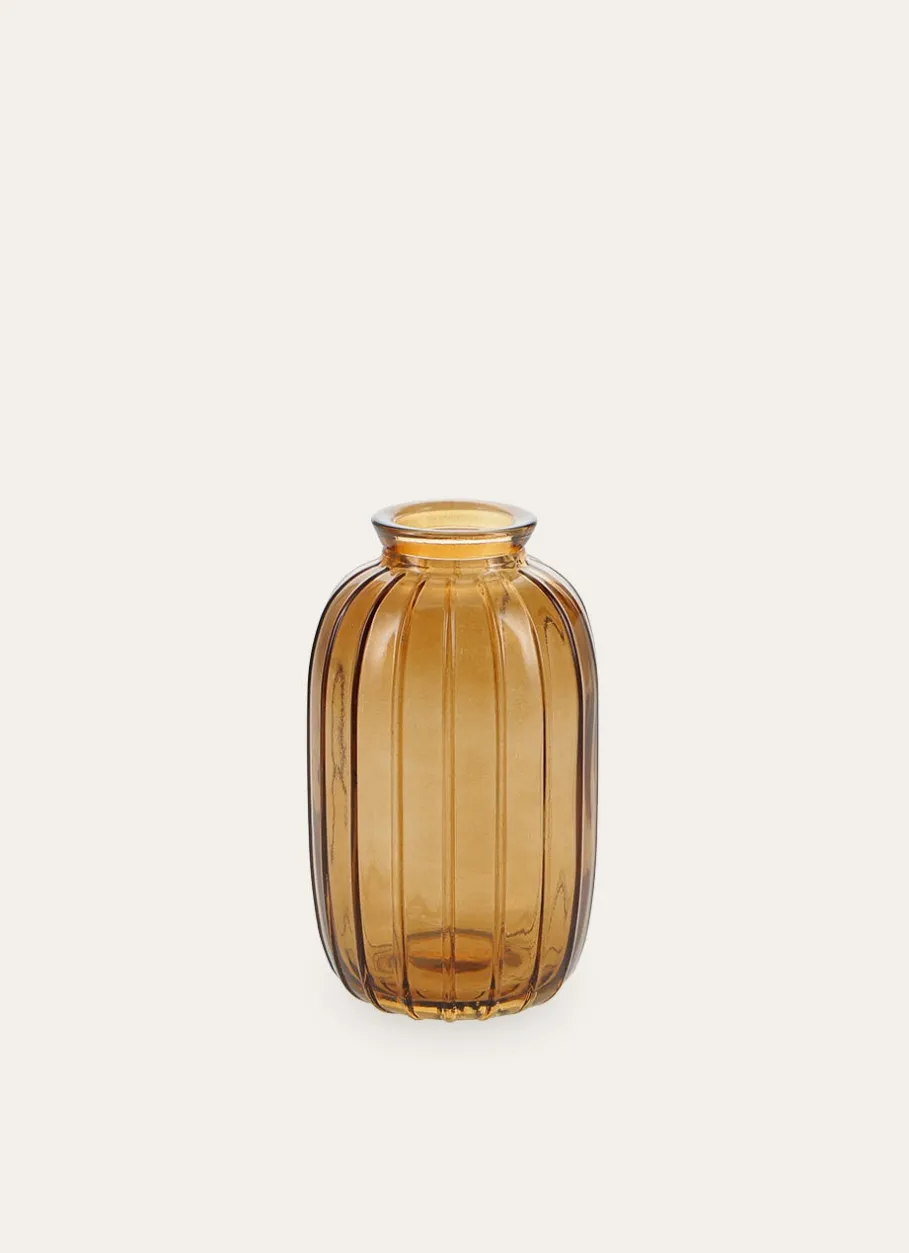 Apportez une touche contemporaine à votre décoration avec ce soliflore en verre strié coloré. Disponible dans deux autres formes et coloris, il sublimera vos petites fleurs ou branches décoratives avec élégance et modernité.Dimensions (cm) : 7 x 7 x 12.