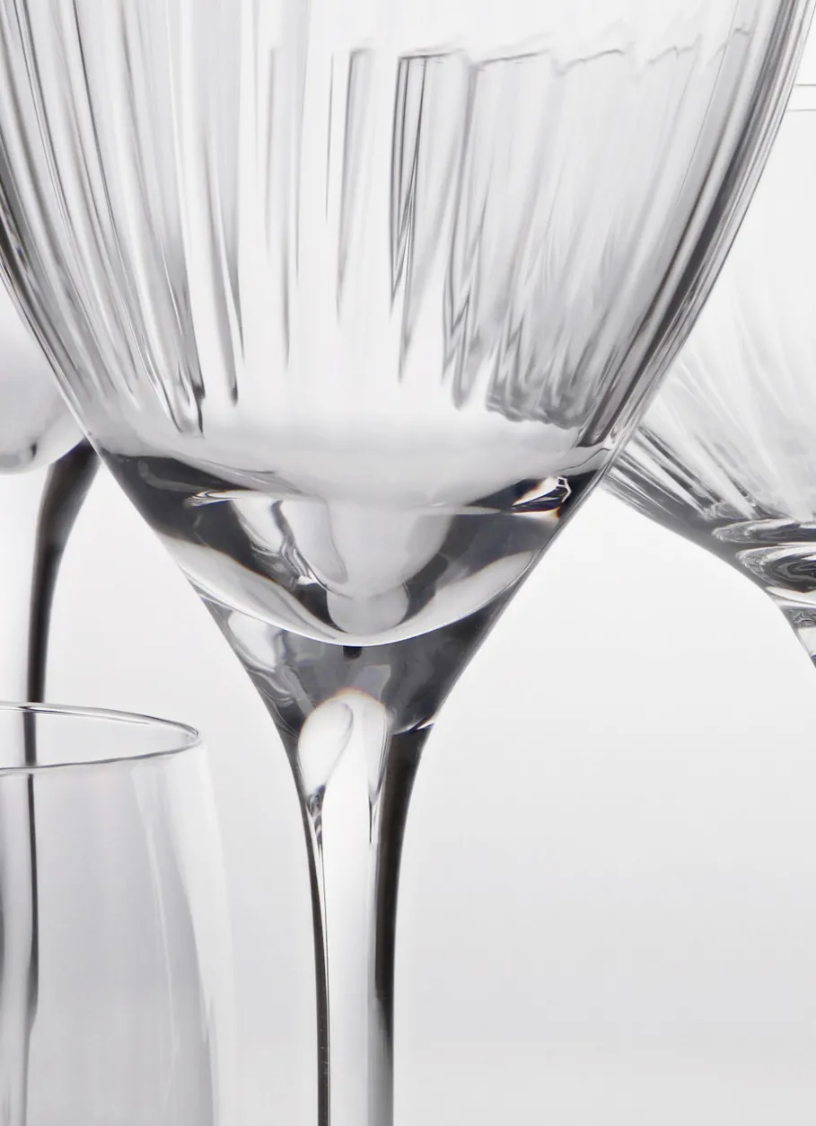 Flûte avec reliefs. Un indispensable à avoir chez soi. Ces flûtes sont réalisées en Teqton : ce verre spécial ultra résistant ne craint pas les chocs. Elles se caractérisent par une résistance aux chocs et une stabilité plus élevée, la plus grande dureté de surface assure une résistance aux rayures. Contenance : 25 cl. Dimensions (cm) : H25 X D8.