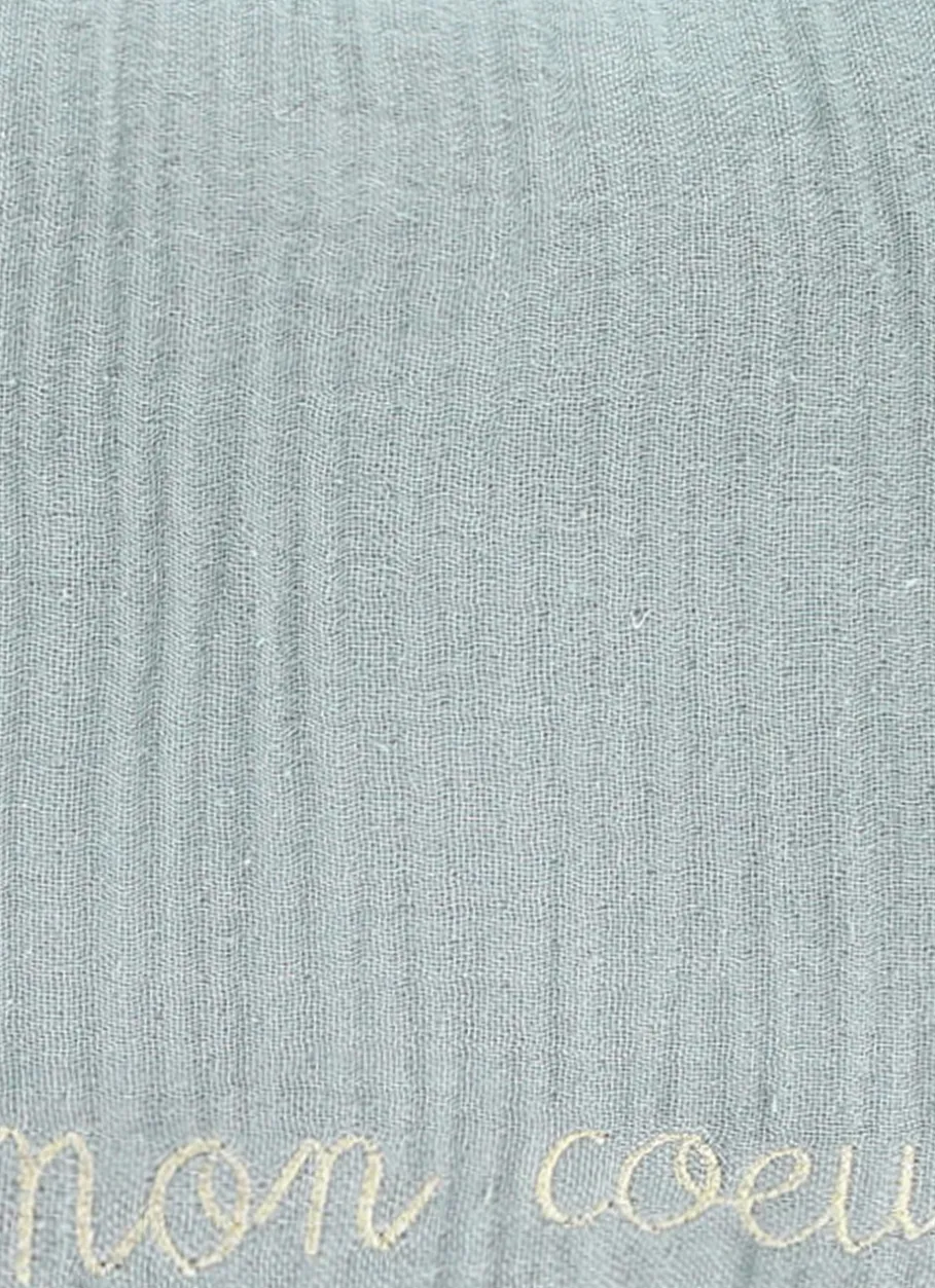 Coussin en gaze de coton avec texte brodé en fil doré. Un joli coussin que les petits et les grands vont adorer. Existe en plusieurs coloris. Dimensions (cm) : H25 x L35 Eco-participation : 0,06 €